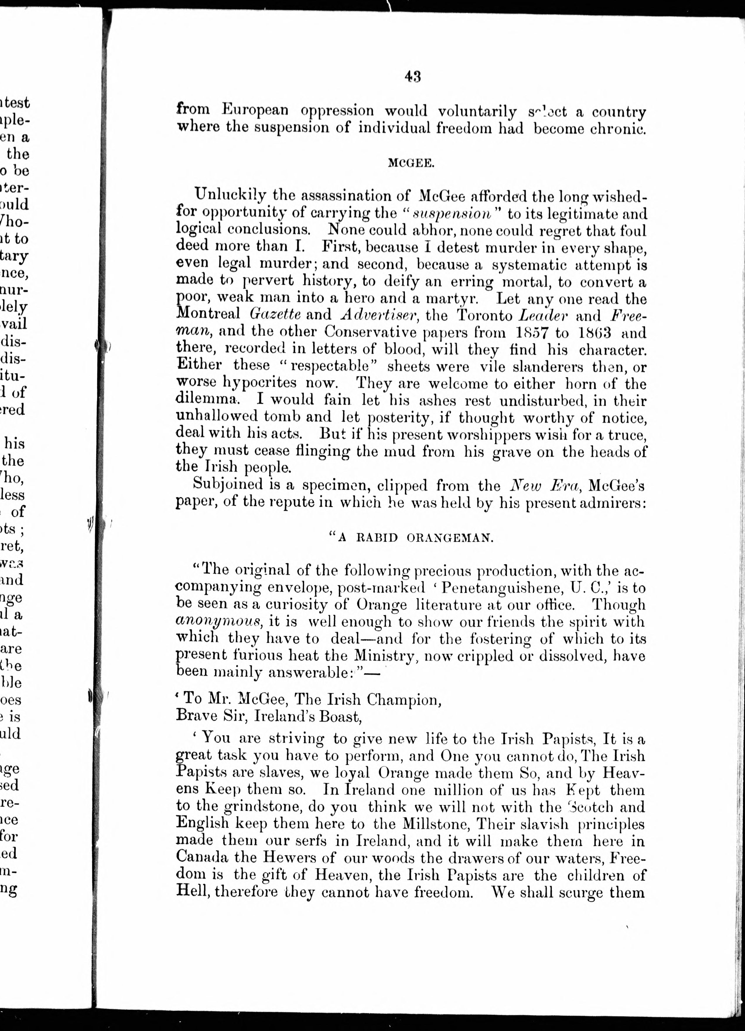 - The political standing of Irish catholics in Canada : a critical analysis of its causes, with suggestions for its amelioration