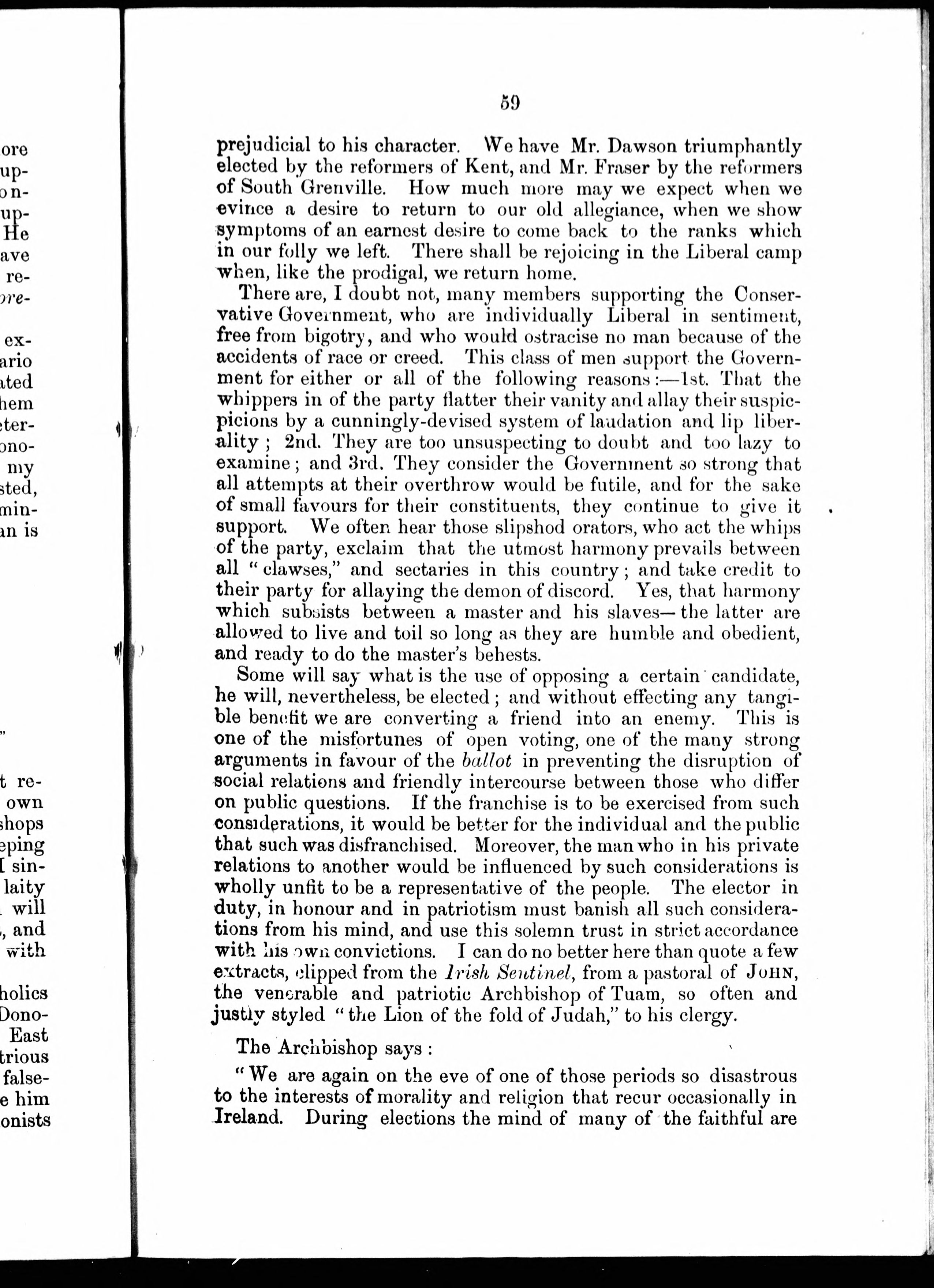 - The political standing of Irish catholics in Canada : a critical analysis of its causes, with suggestions for its amelioration