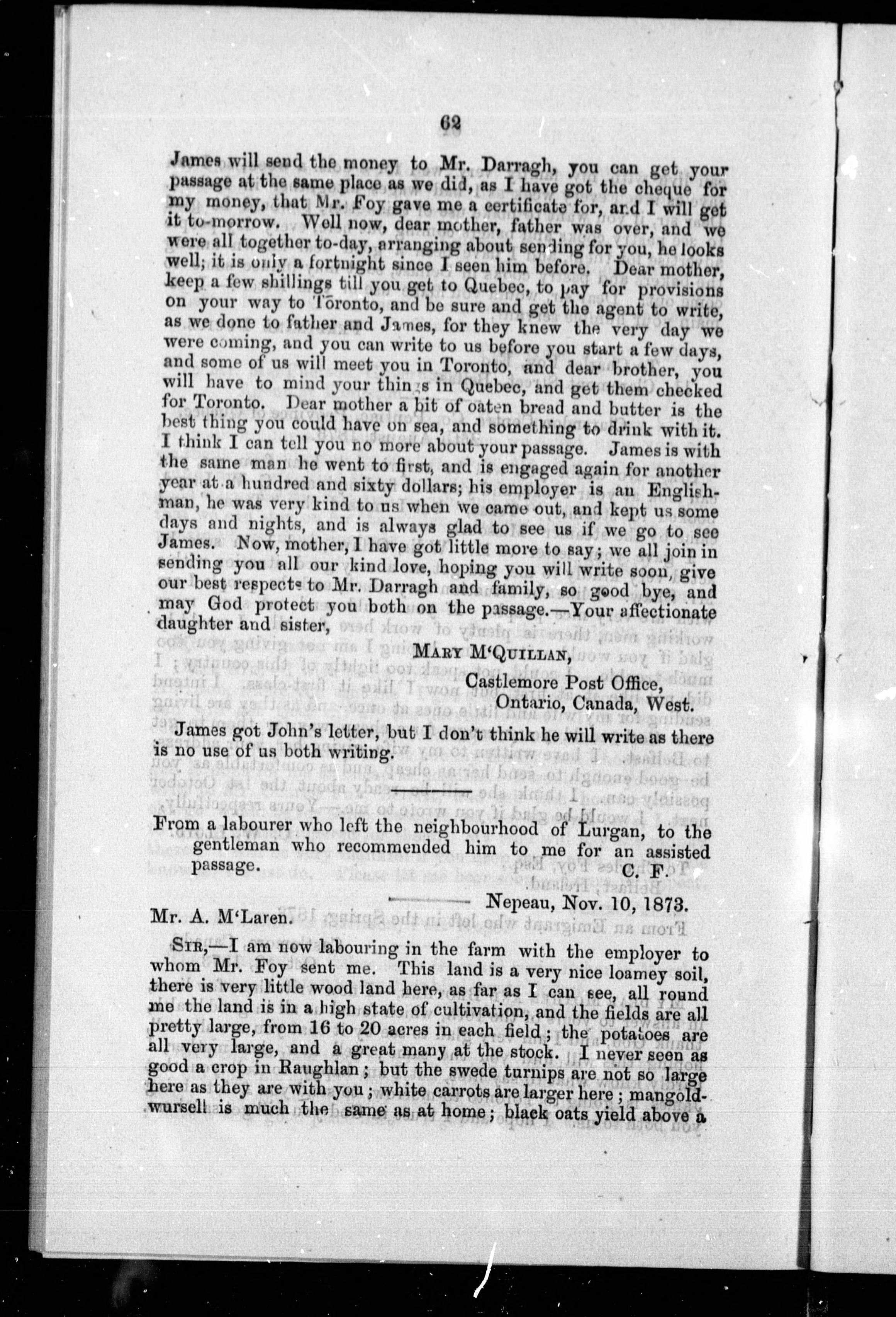 Preface signed: Charles Foy, Commissioner of Emigration for Dominion Canada.