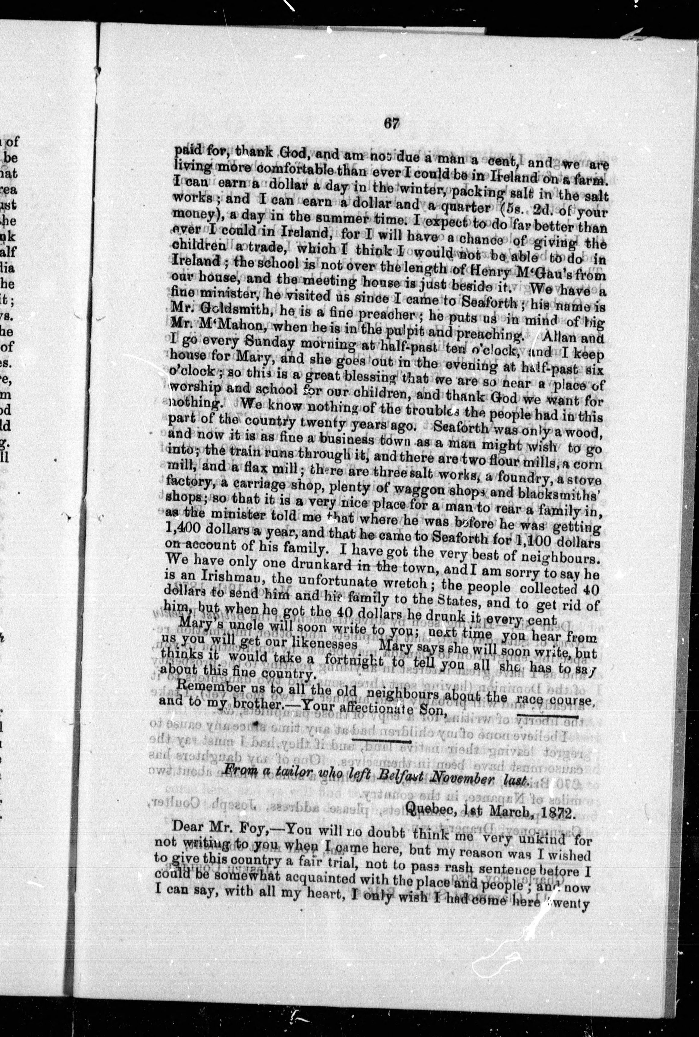 Preface signed: Charles Foy, Commissioner of Emigration for Dominion Canada.