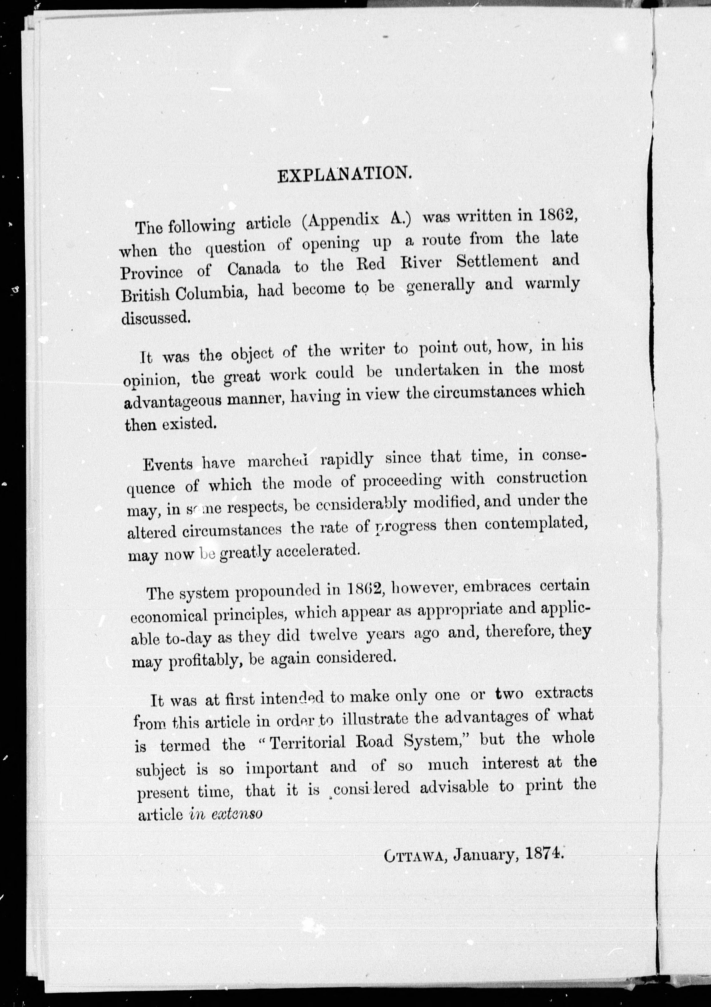 With: Appendix A: Observations and practical suggestions on the subject of a railway through British North America, submitted to the government of the province of Canada, in the year 1863 / by Sandford Fleming. Appendix B: Canadian Pacific Railway, memorandum Feby. 1873 / by Sandford Fleming.