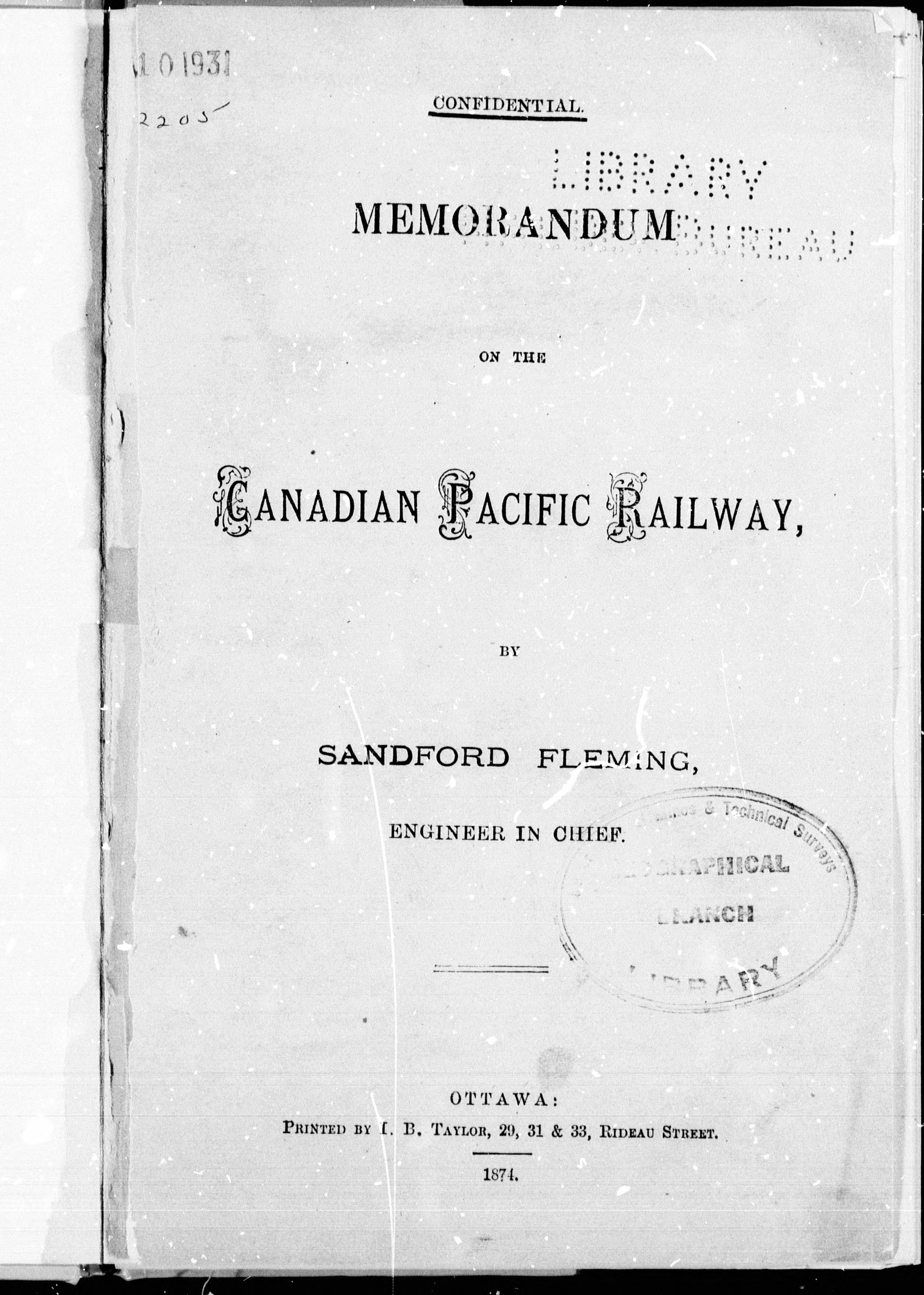 With: Appendix A: Observations and practical suggestions on the subject of a railway through British North America, submitted to the government of the province of Canada, in the year 1863 / by Sandford Fleming. Appendix B: Canadian Pacific Railway, memorandum Feby. 1873 / by Sandford Fleming.
