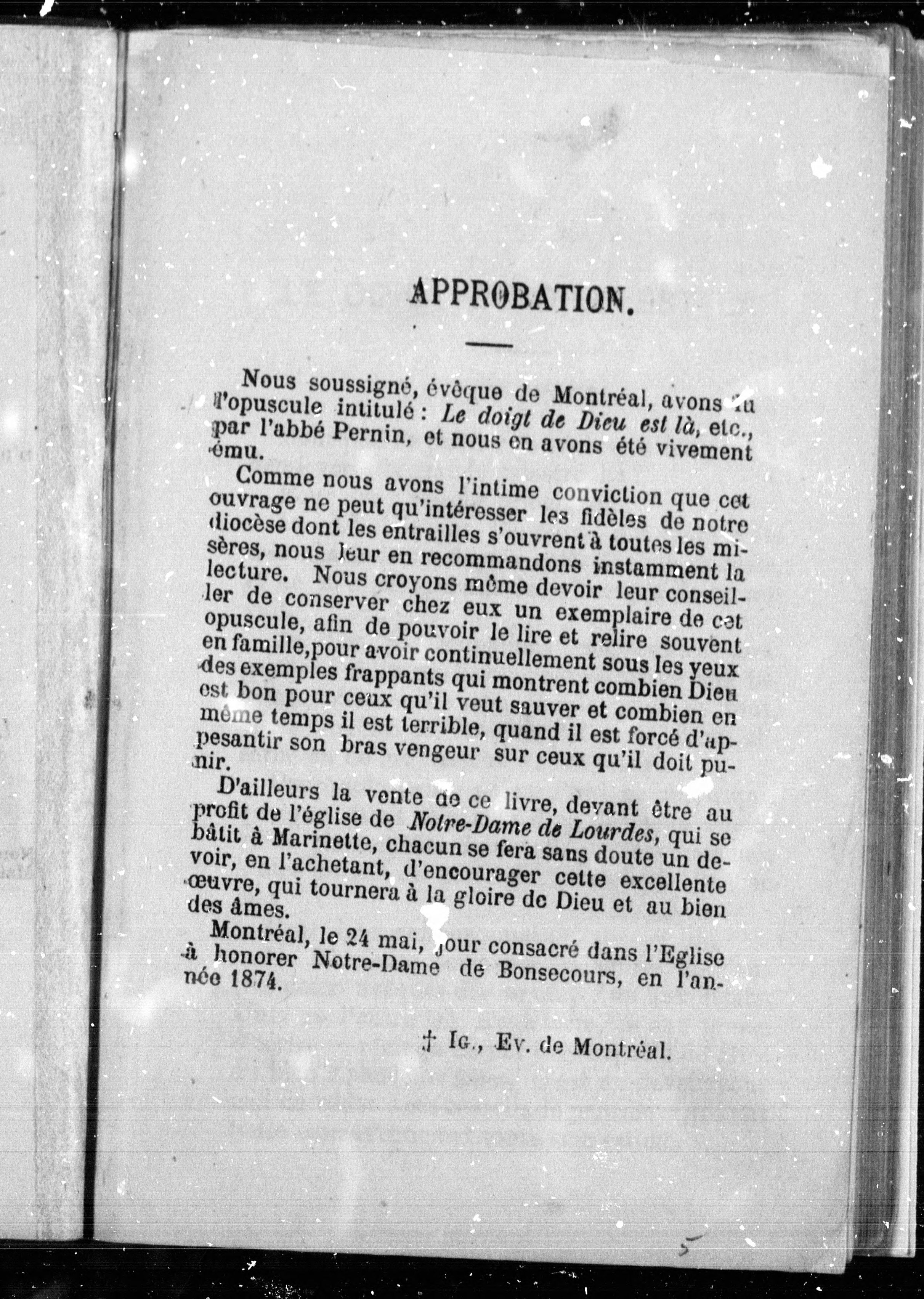 "Avec approbation de Mgr. l'évêque de Montréal."