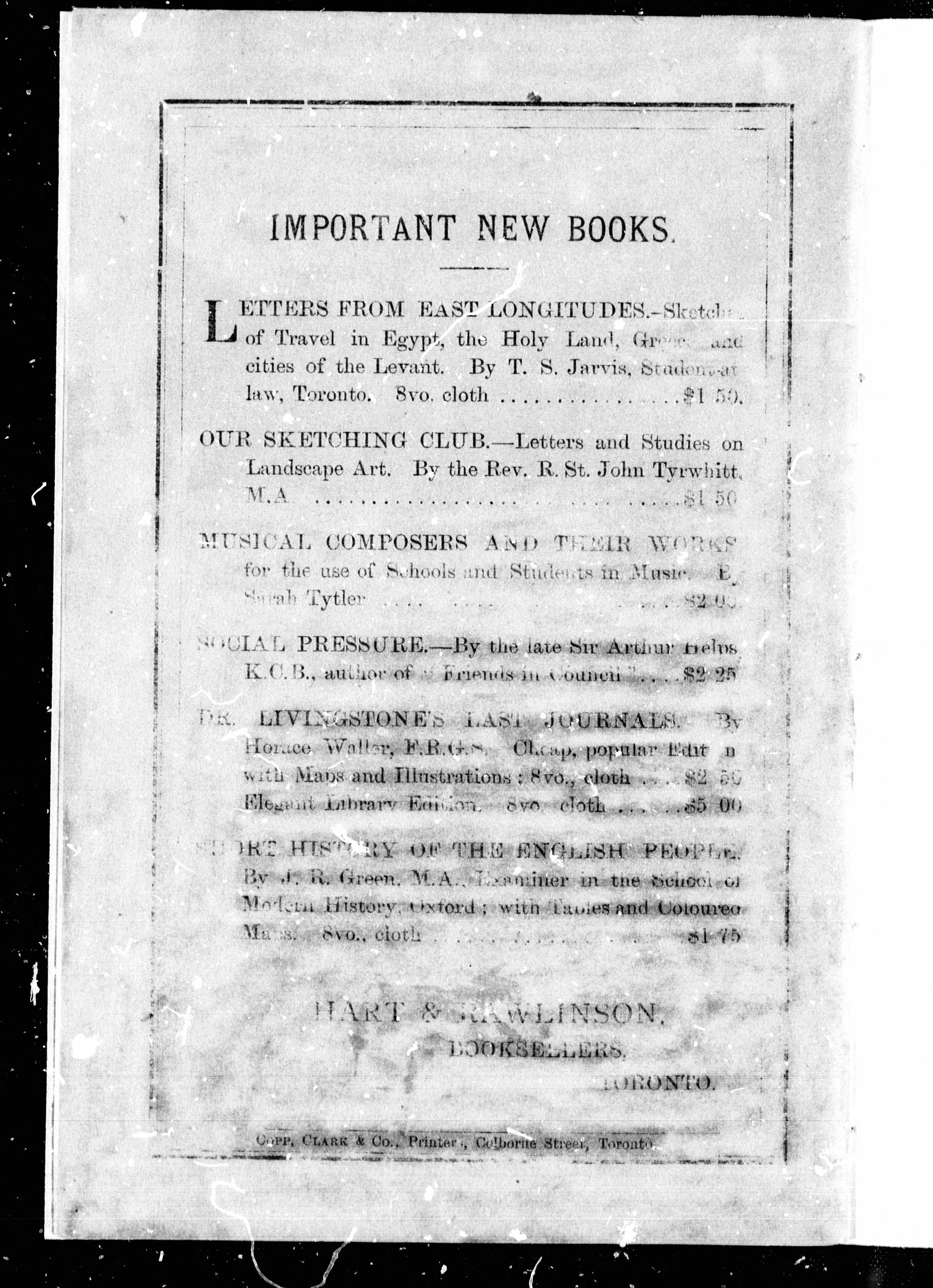 Toronto : Hart and Rawlinson, 1875.; 33 images, 30 avec recherche en texte intégral