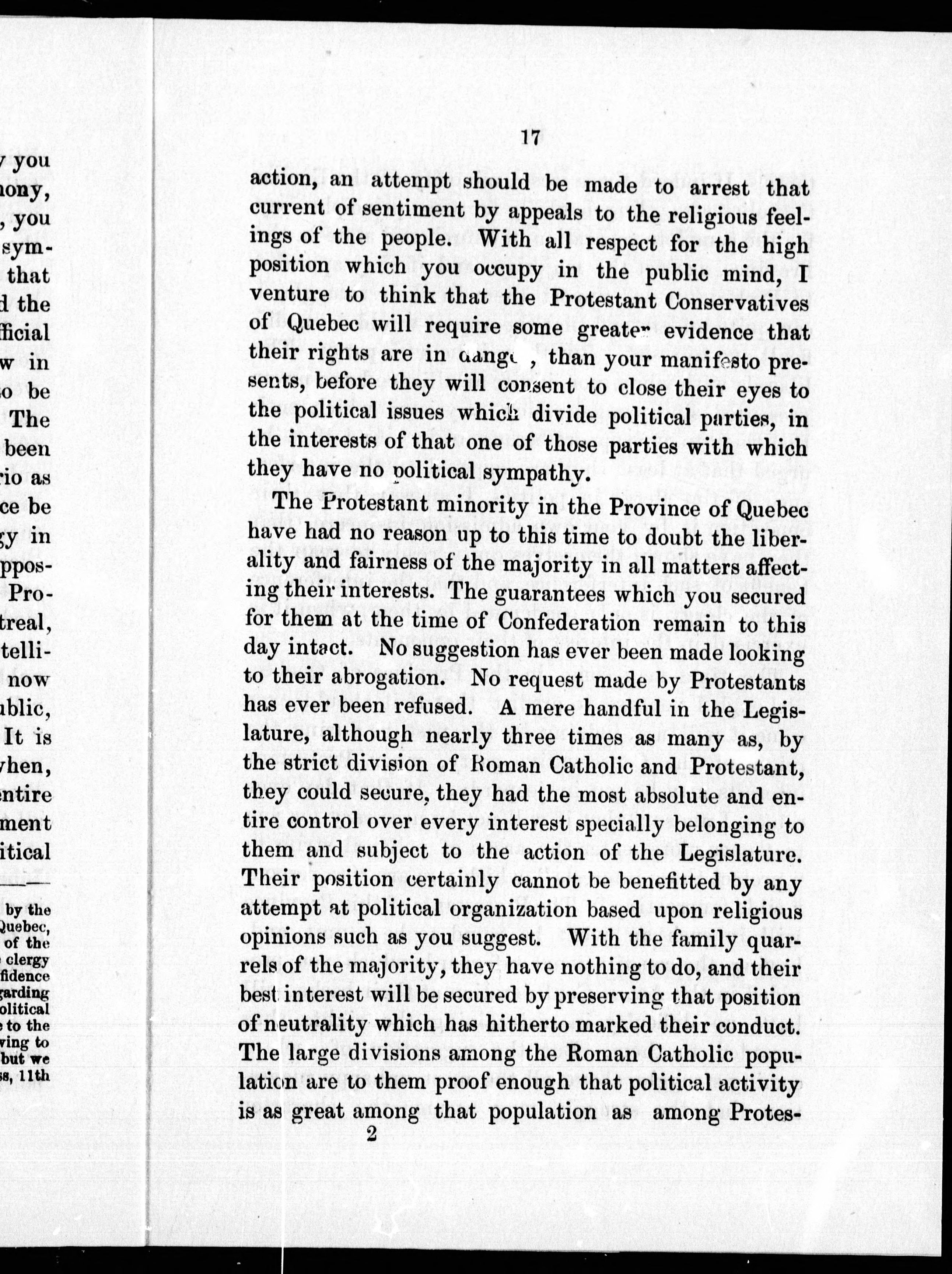 The Protestant minority in Quebec in its political relations with the Roman Catholic majority : a letter addressed to Sir Alexander Tilloch Galt, K.C.M.G.