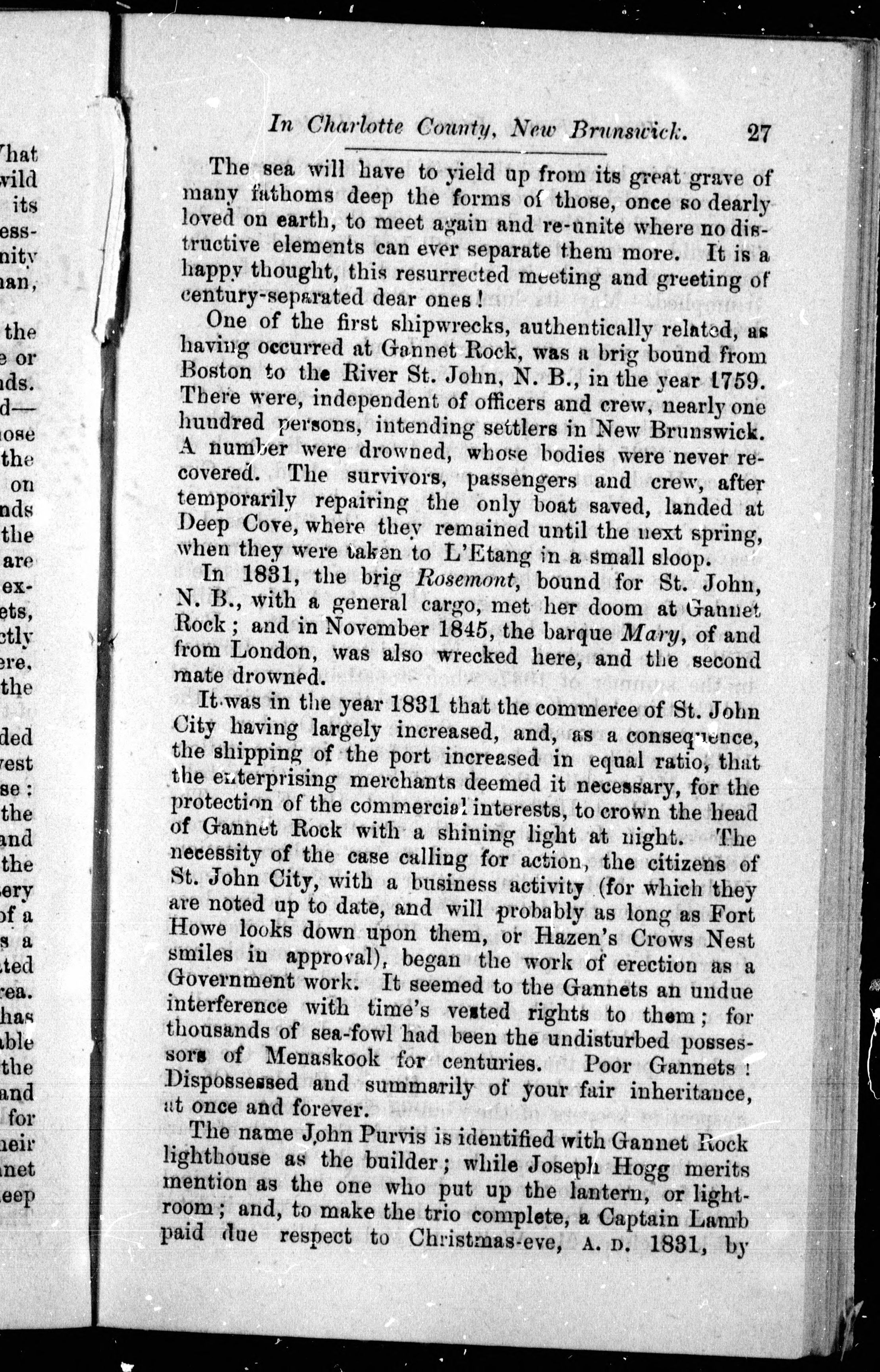 History of the islands and islets in the Bay of Fundy, Charlotte County, New Brunswick : from their earliest settlement to the present time, including sketches of shipwrecks and other events of exciting interest