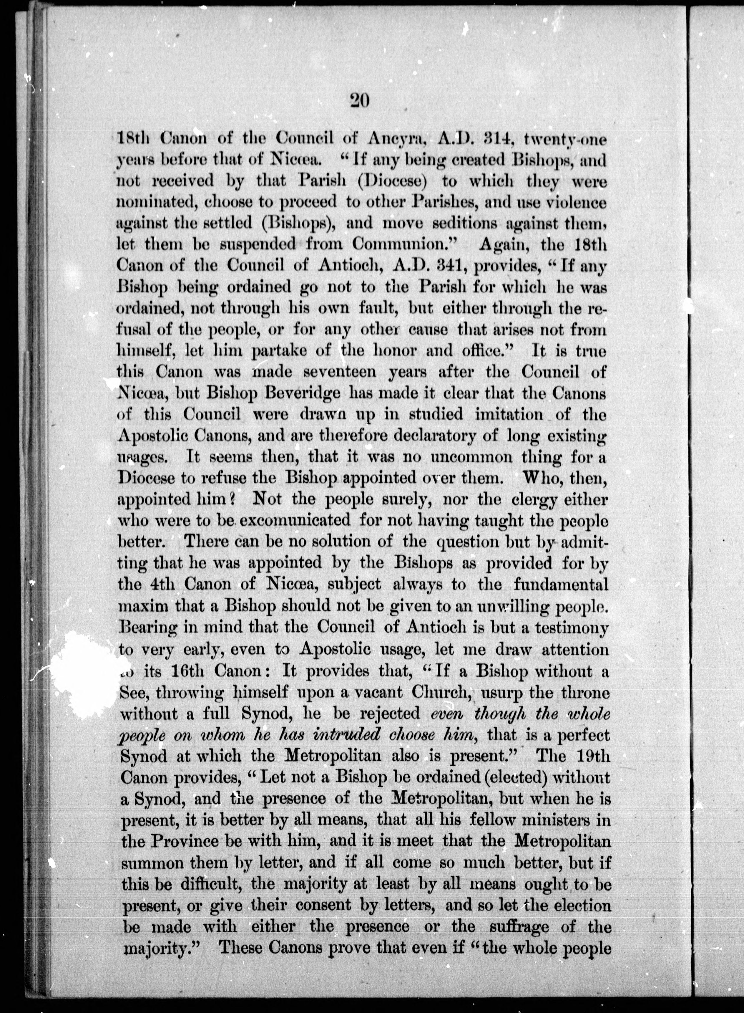 Episcopal elections : a letter to the Ven. Archdeacon Whitaker, M.A., prolocutor of the Provincial Synod of Canada by John Travers Lewis, D.D., LL.D., Bishop of Ontario ; being an answer to "A study in ecclesiastical polity" by S. Dawson, Esq., delegate to the Provincial Synod, from the Diocesan Synod of Montreal.