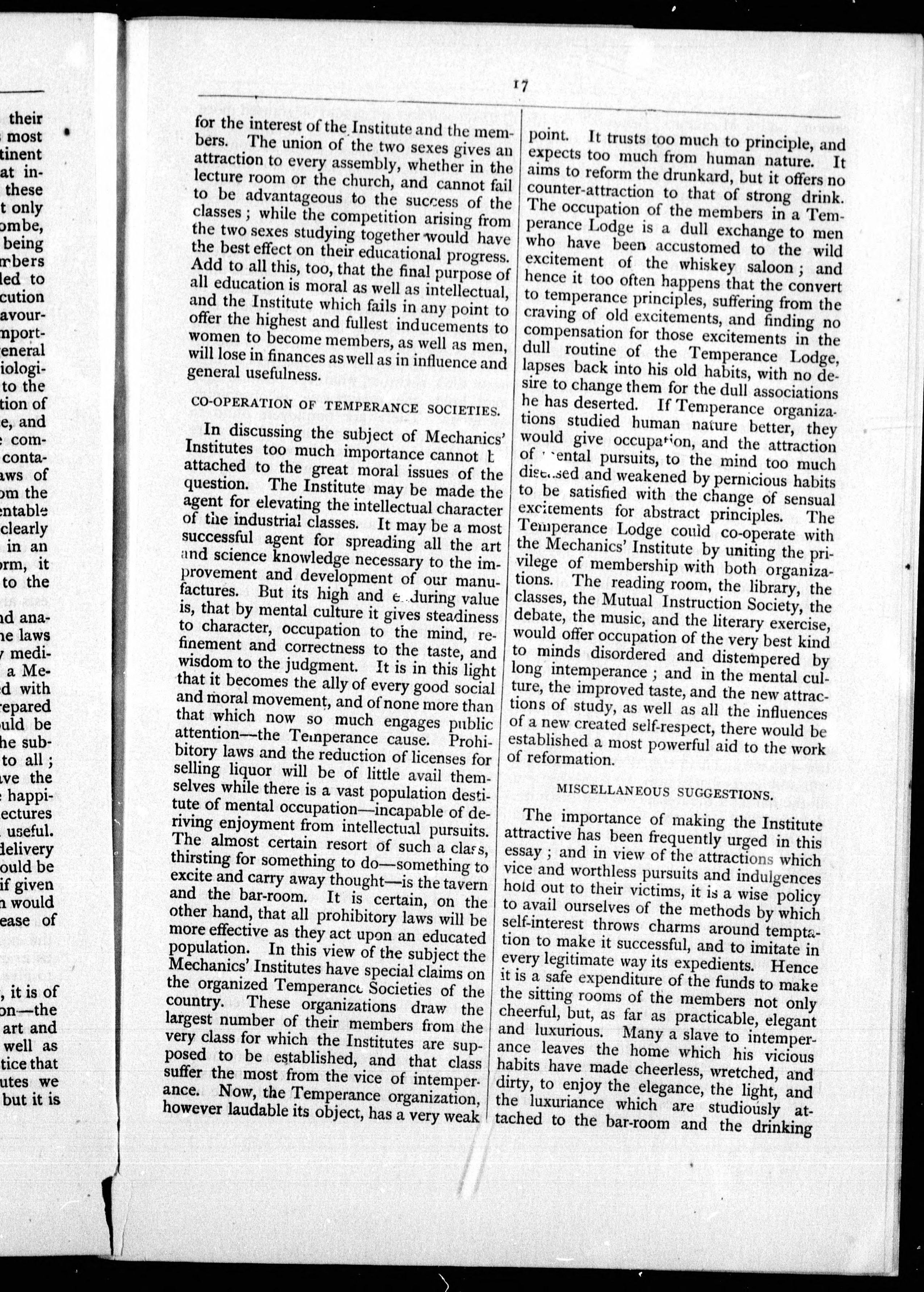 First essay by Thomas Davison; second by Richard Lewis. These were the first and second prize essays, respectively, in a competition held by the Association of Mechanics' Institutes of Ontario.