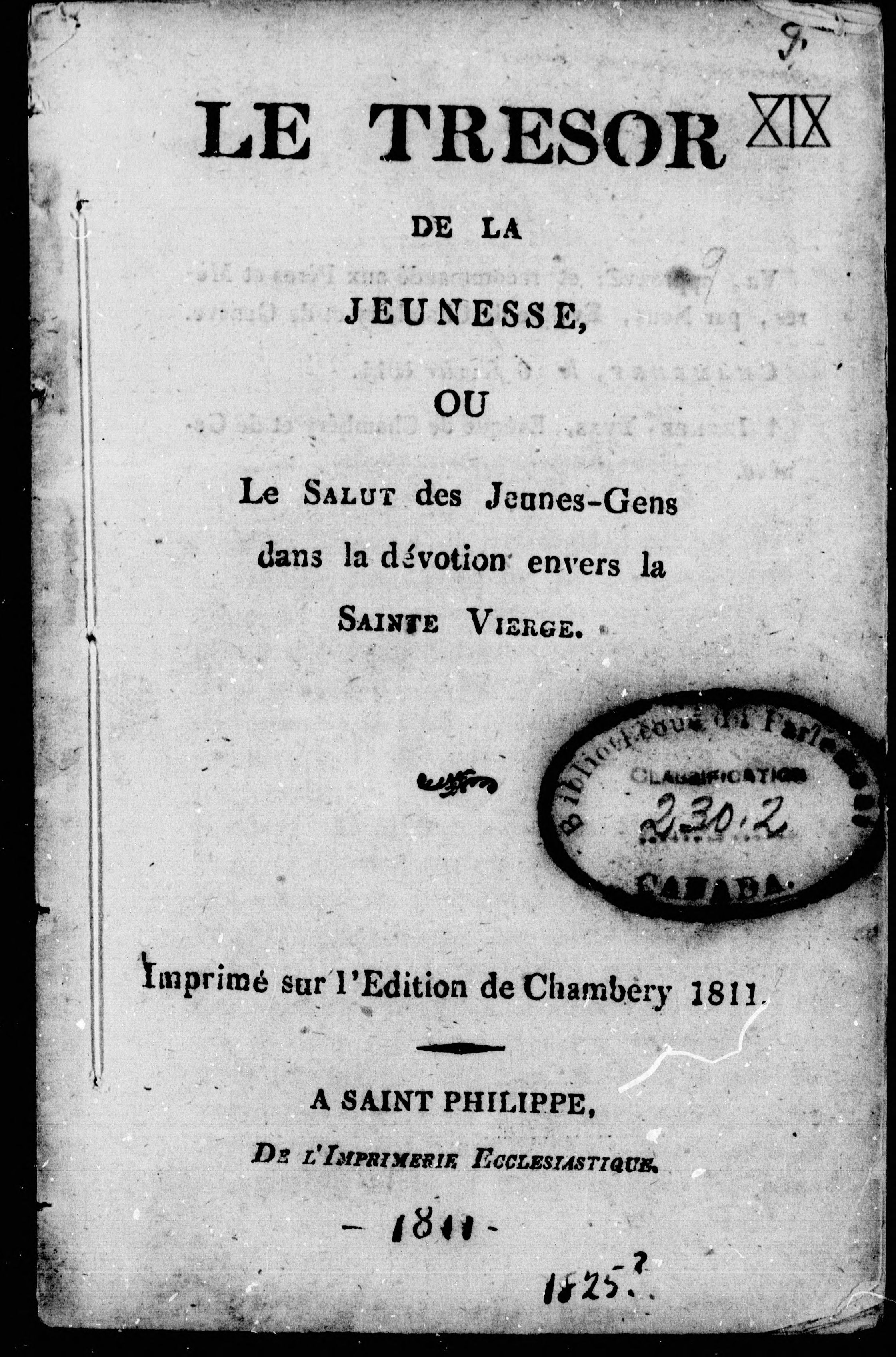 Aide Saint Philippe [Québec] : Imprimerie ecclesiastique, [1825?]; 38 images, 37 avec recherche en texte intégral