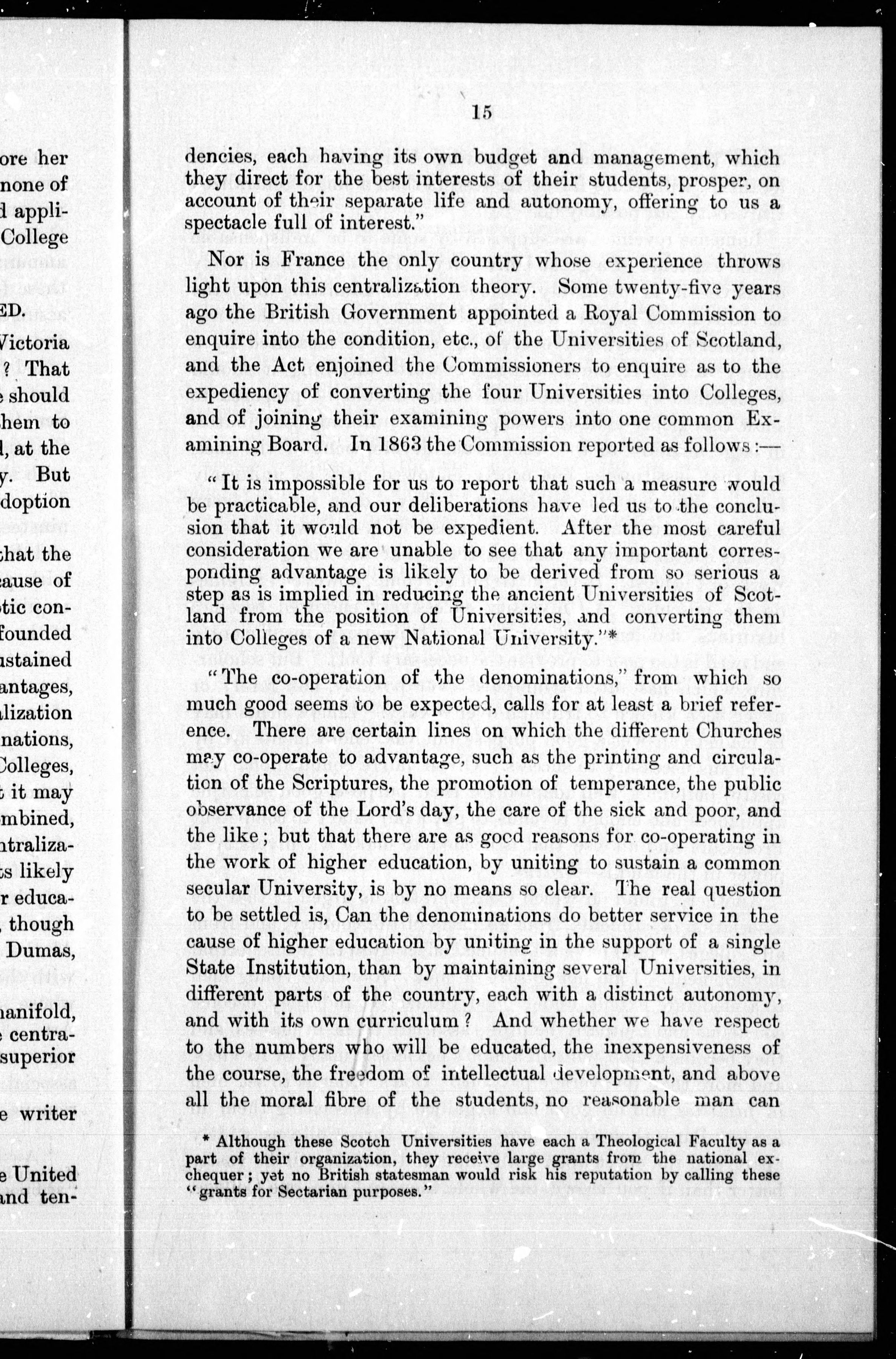 '"We are unable to see that any important corresponding advantage is likely to be derived from so serious a step as is implied in reducing the ancient Universities of Scotland from the position of Universities ..."'