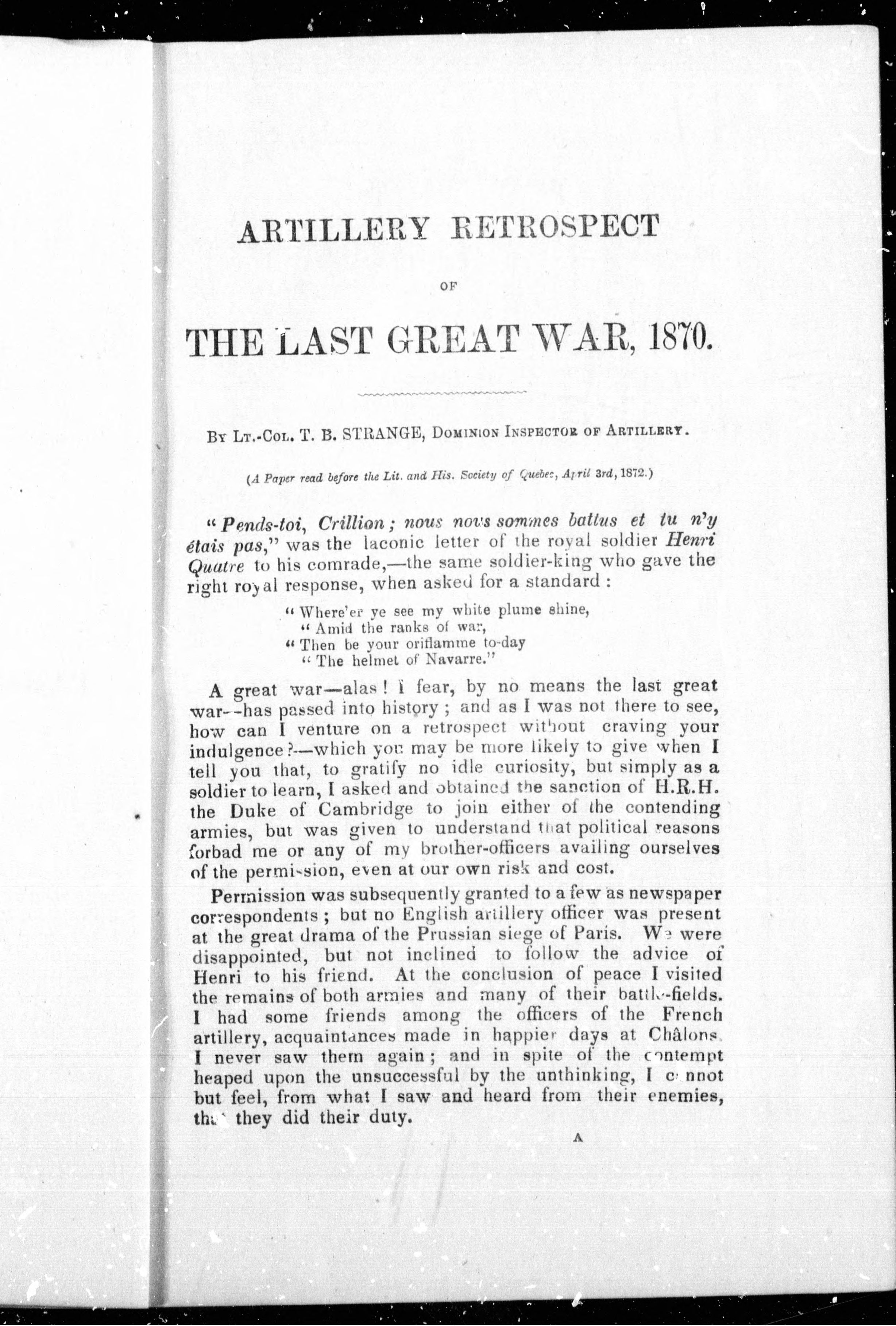 Artillery retrospect of the last great war, 1870 : with its lessons for Canadians