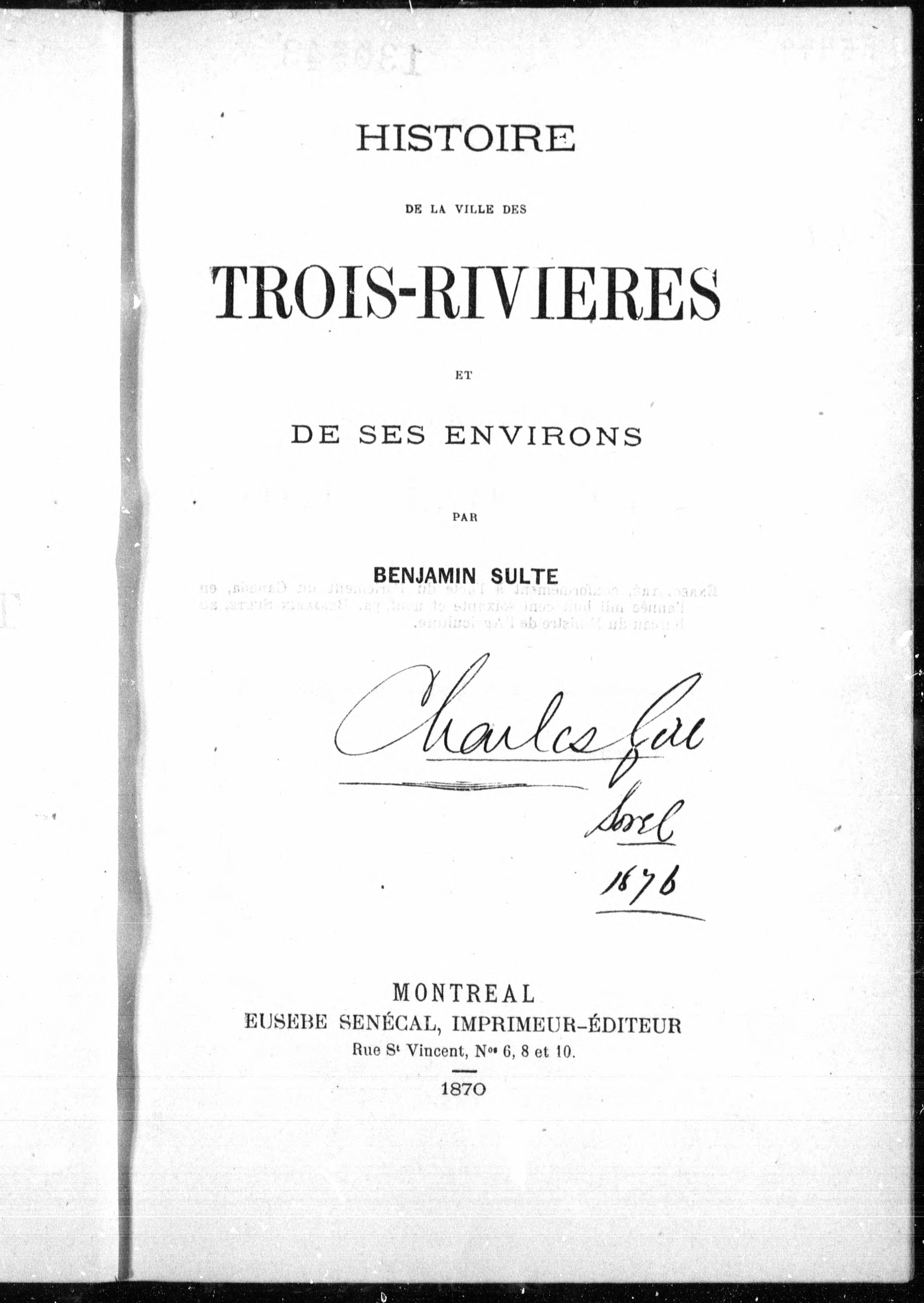 Histoire de la ville de Trois-Rivières et de ses environs /