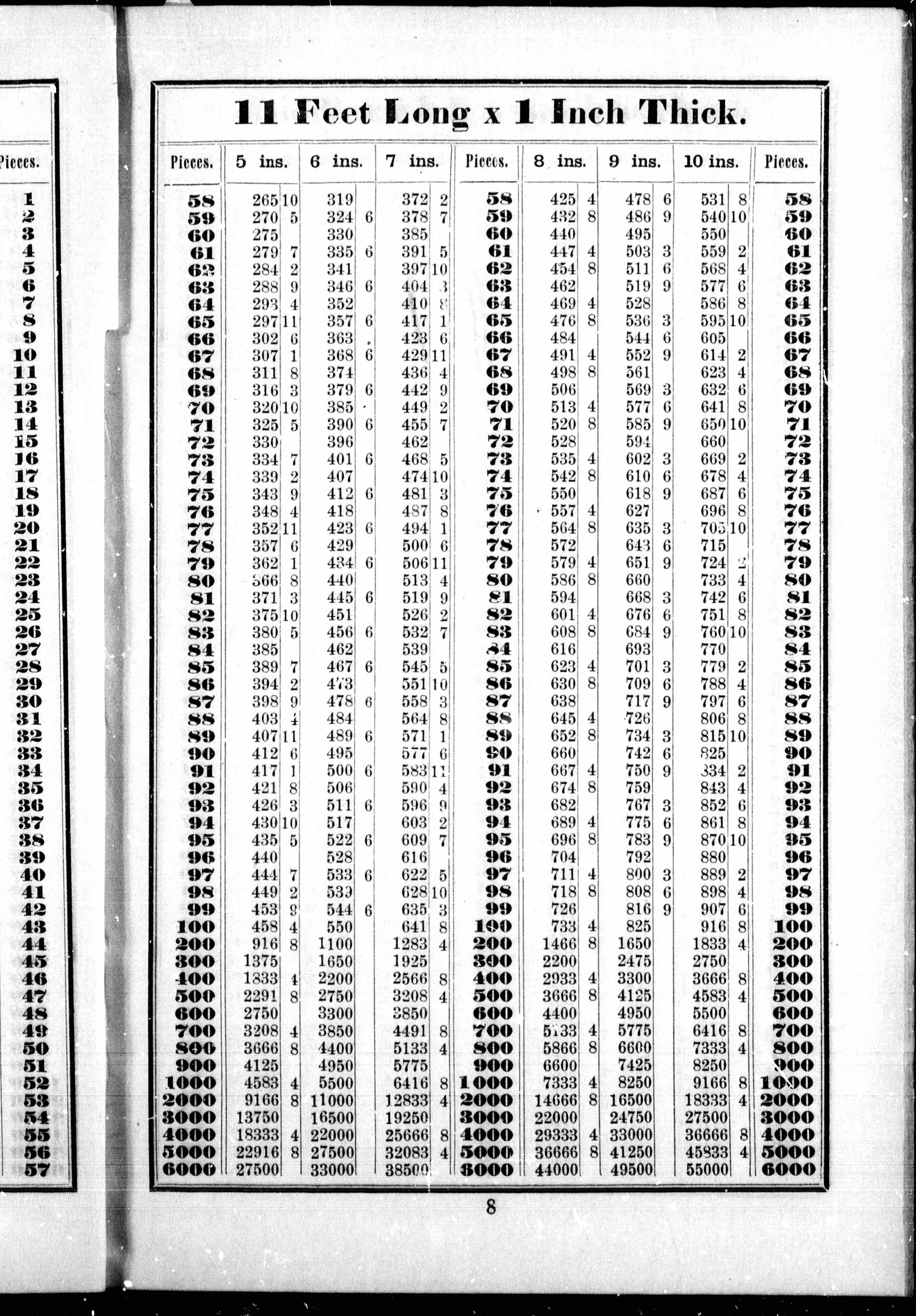 Tables for converting one inch lumber and Quebec standard into board measure.