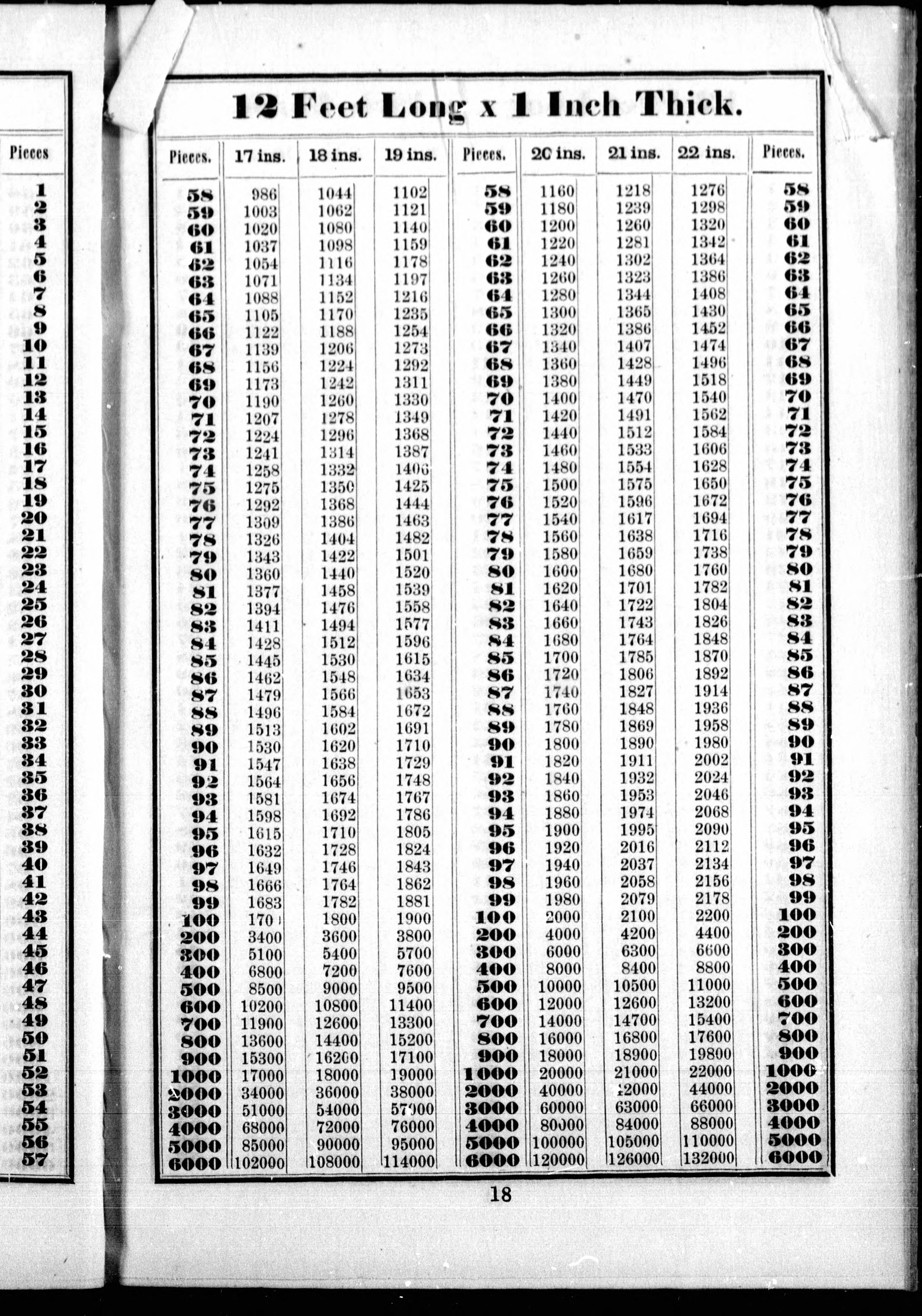Tables for converting one inch lumber and Quebec standard into board measure.