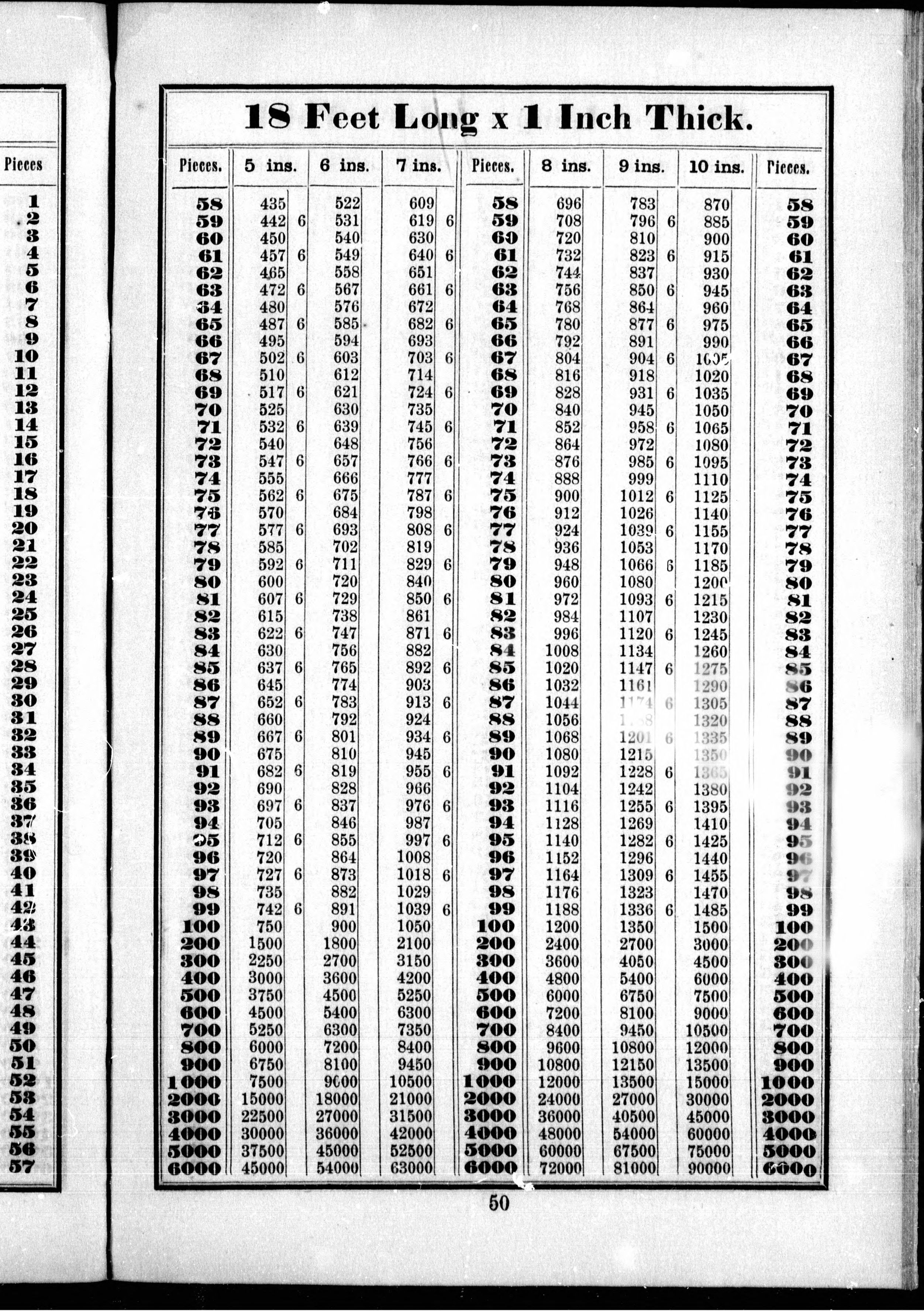 Tables for converting one inch lumber and Quebec standard into board measure.