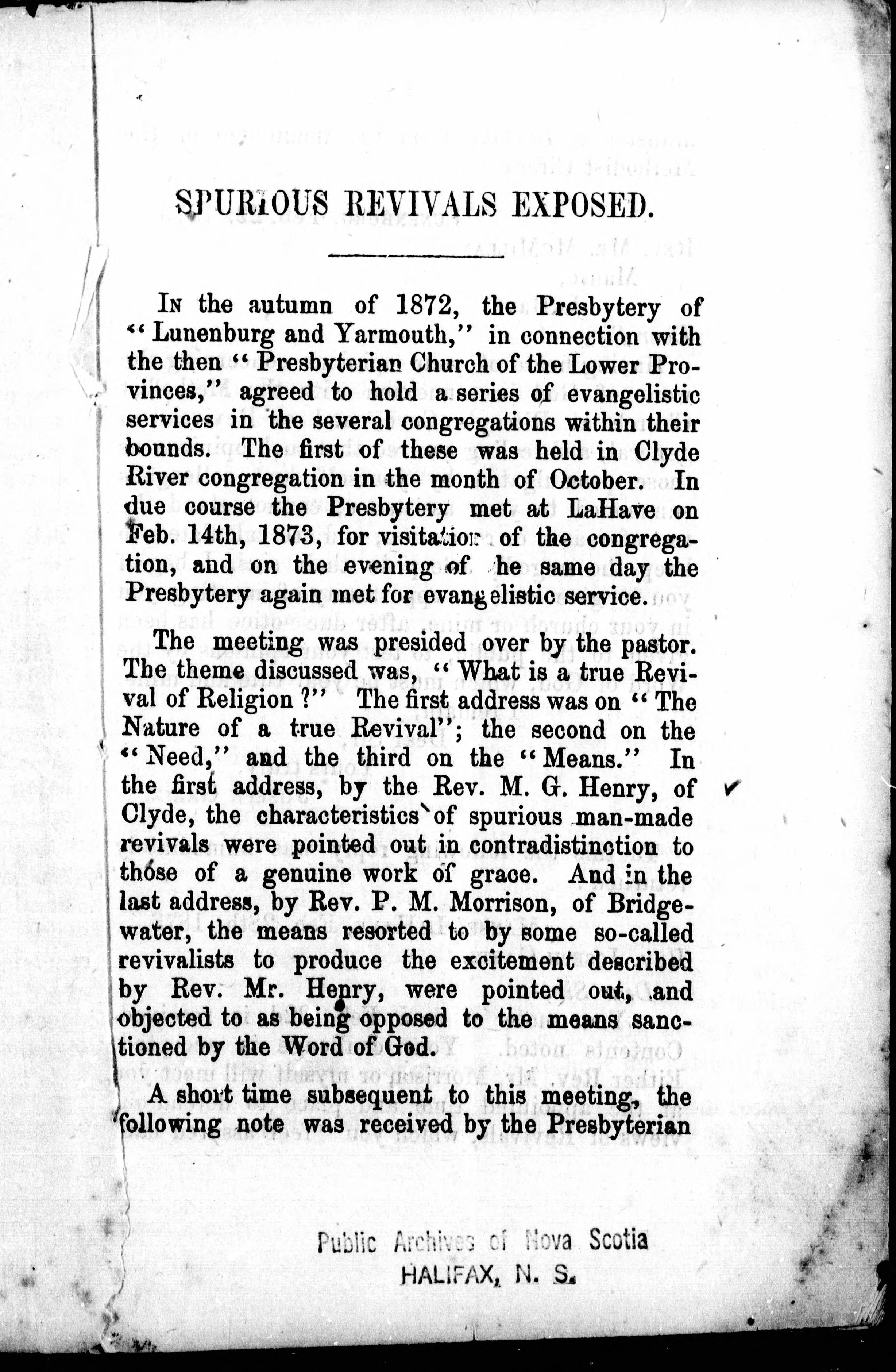 - Spurious revivals in the county of Lunenburg exposed : a historical narrative.