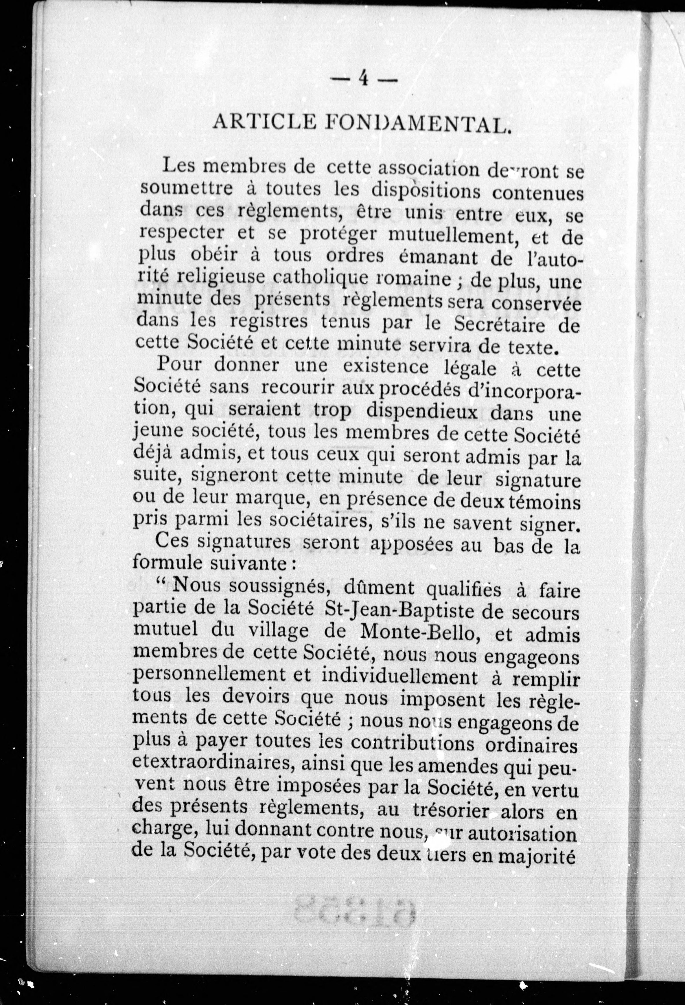 Constitution et règlements de la Société Saint-Jean-Baptiste de secours mutuel du village de Montebello :