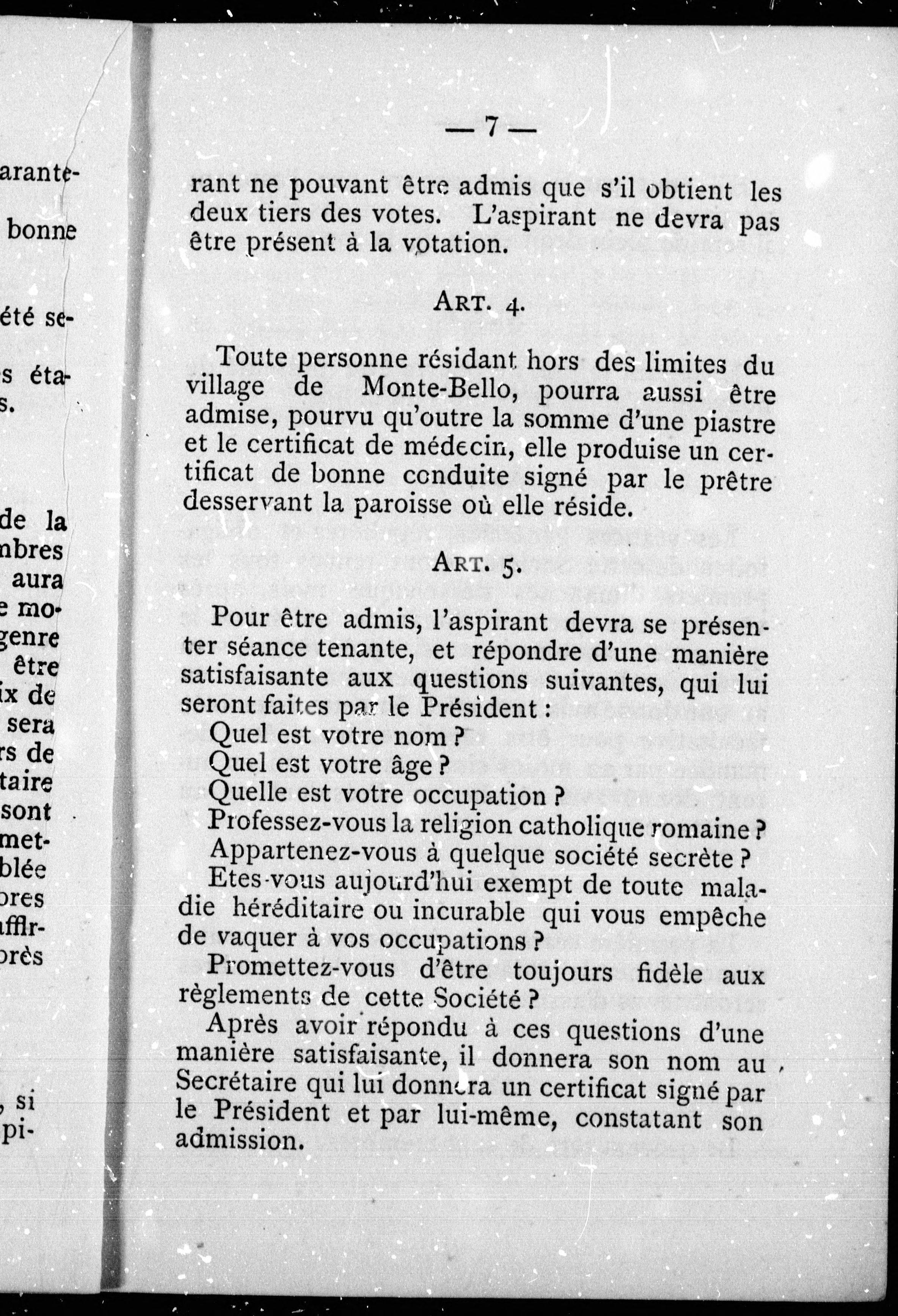 Constitution et règlements de la Société Saint-Jean-Baptiste de secours mutuel du village de Montebello :
