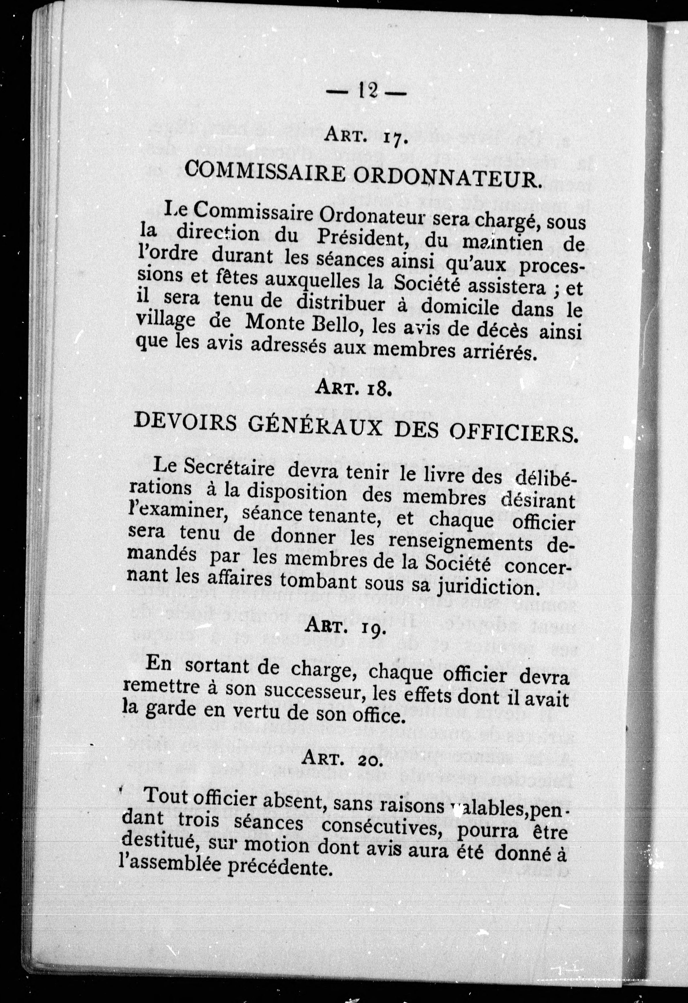 Constitution et règlements de la Société Saint-Jean-Baptiste de secours mutuel du village de Montebello :