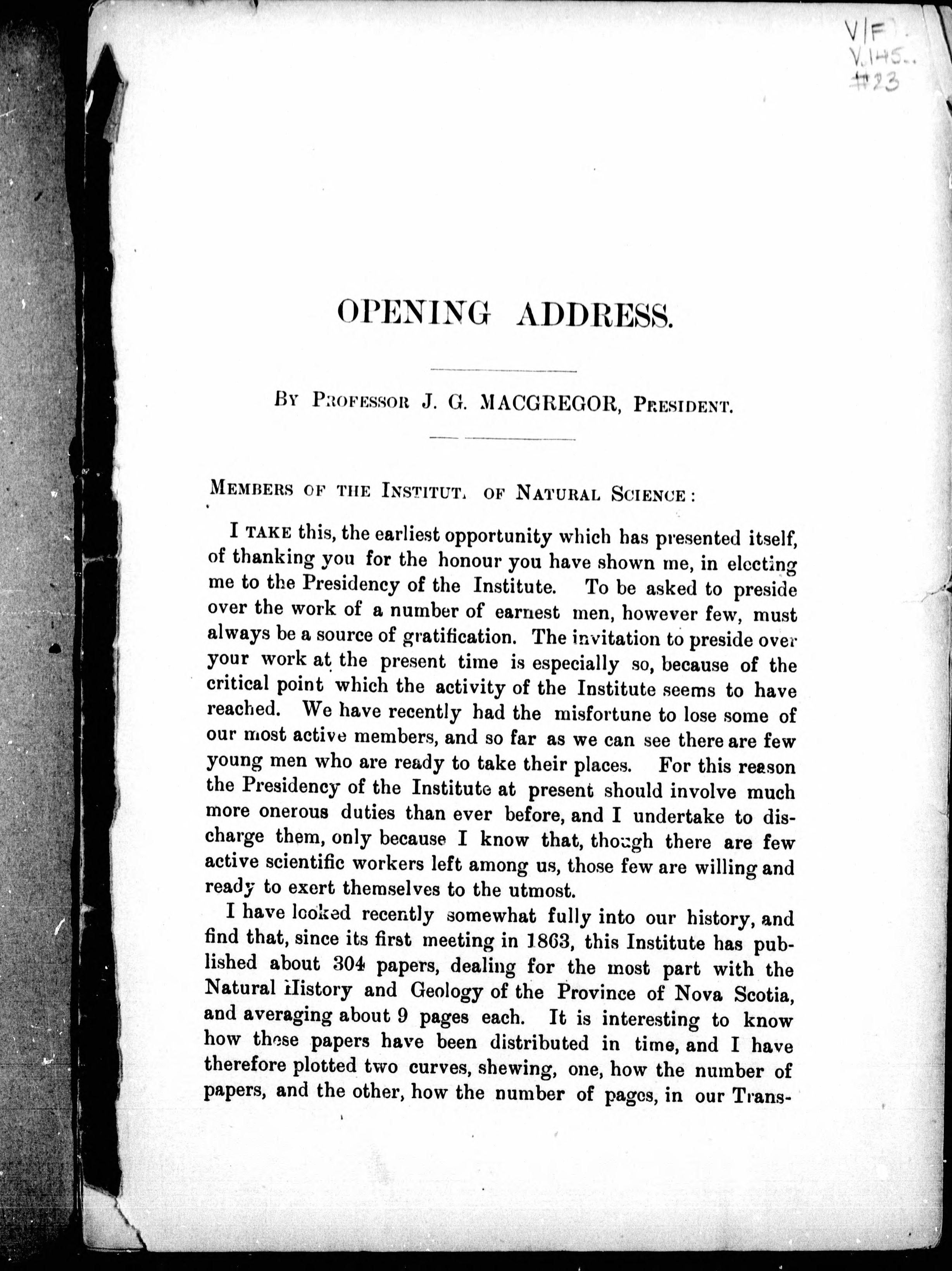 Nova Scotian Institute of Natural Science -- Discours, essais, conférences. - Document original