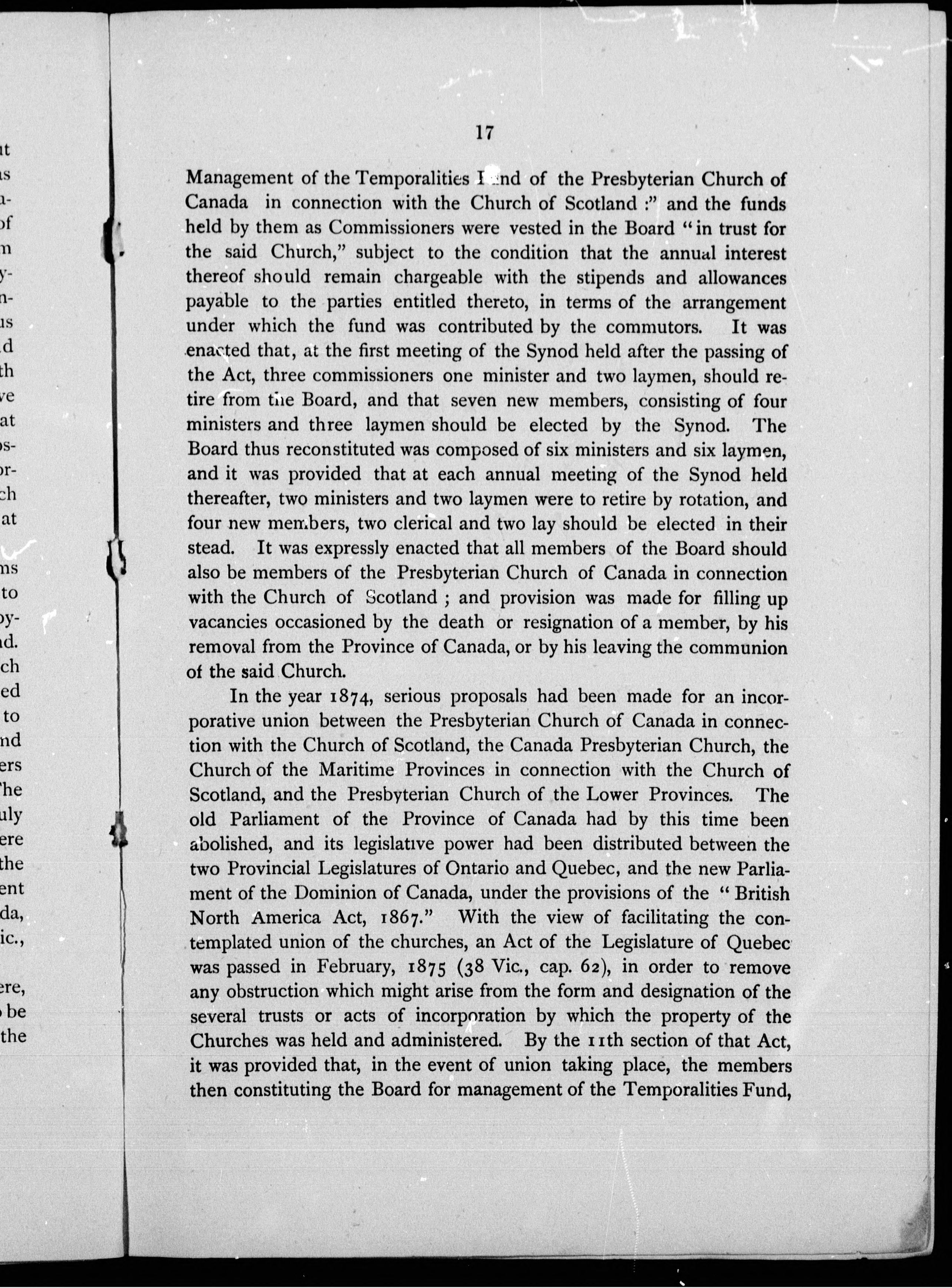 Presbyterian Church of Canada in connection with the Church of Scotland. Temporalities Fund.