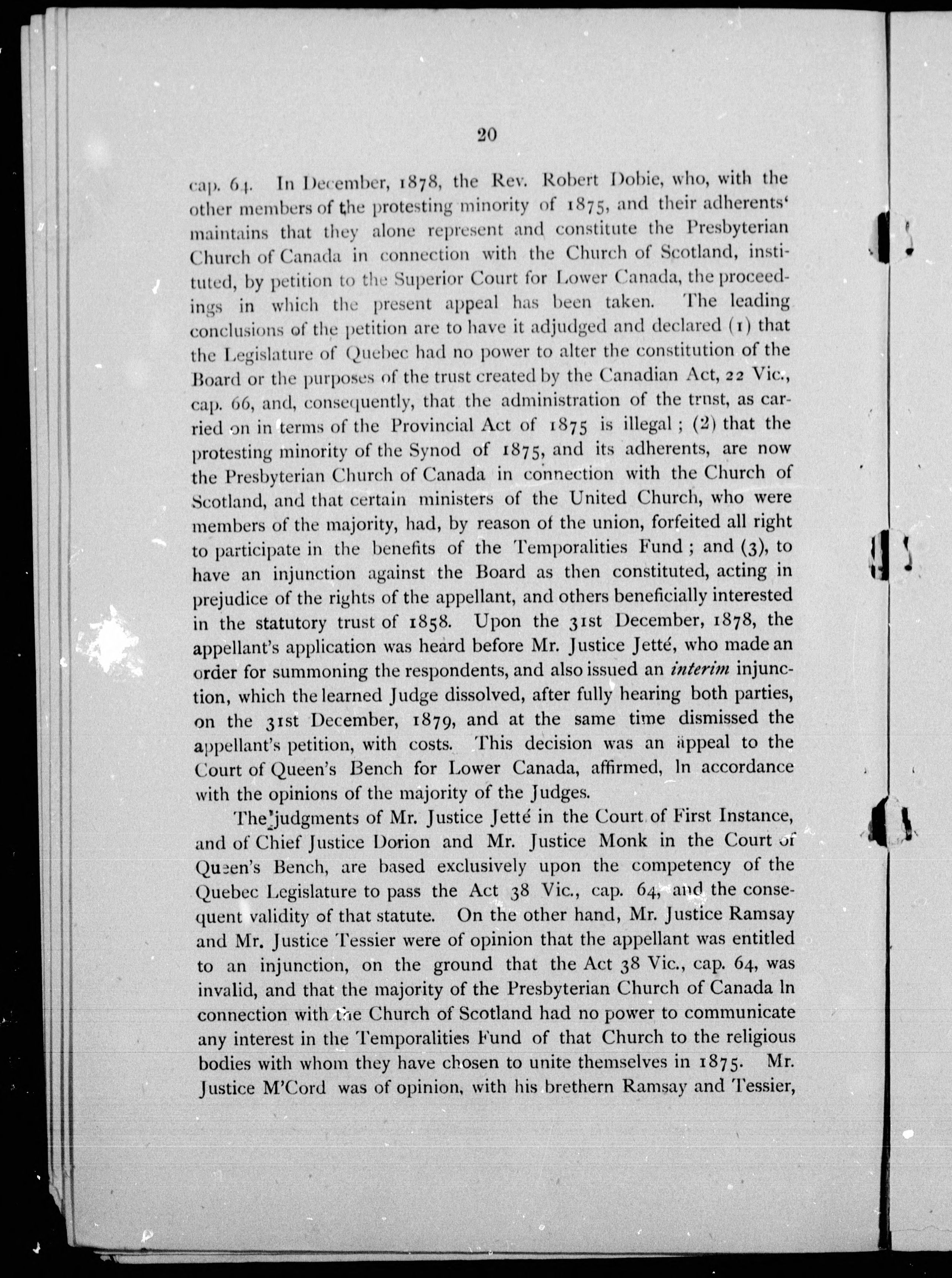 - The Temporalities Fund of the Presbyterian Church of Canada in connection with the Church of Scotland : with the full text of the judgement rendered by the Judicial Committee of Her Majesty's Privy Council at Whitehall, January 21st, 1882.
