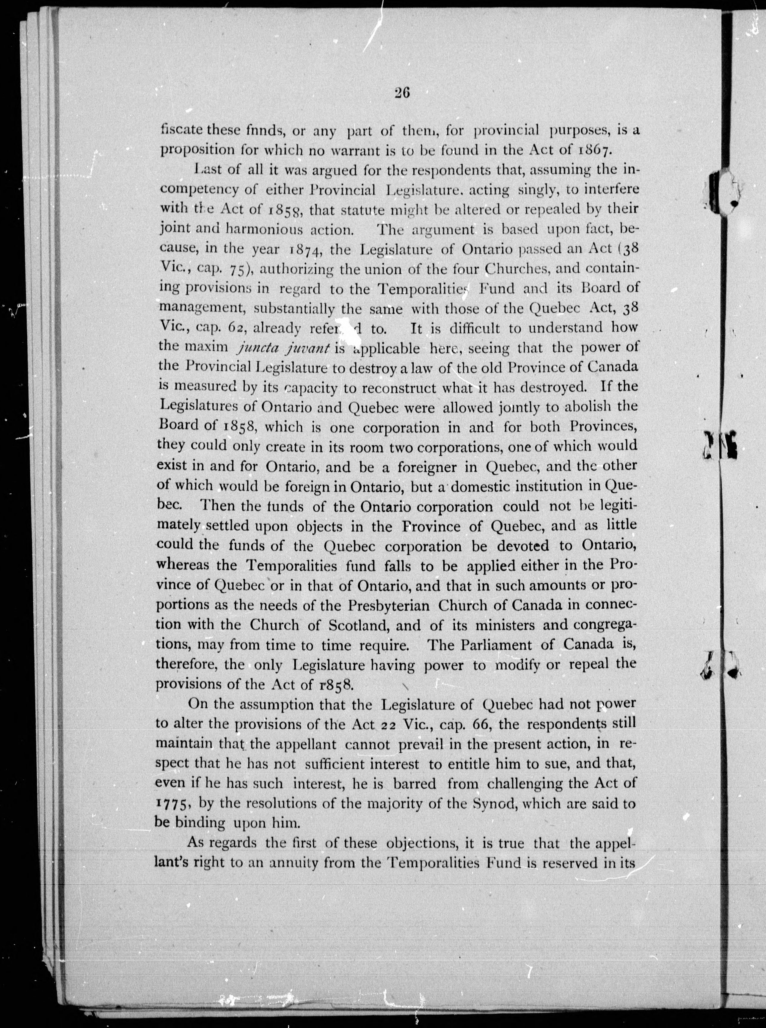 - The Temporalities Fund of the Presbyterian Church of Canada in connection with the Church of Scotland : with the full text of the judgement rendered by the Judicial Committee of Her Majesty's Privy Council at Whitehall, January 21st, 1882.