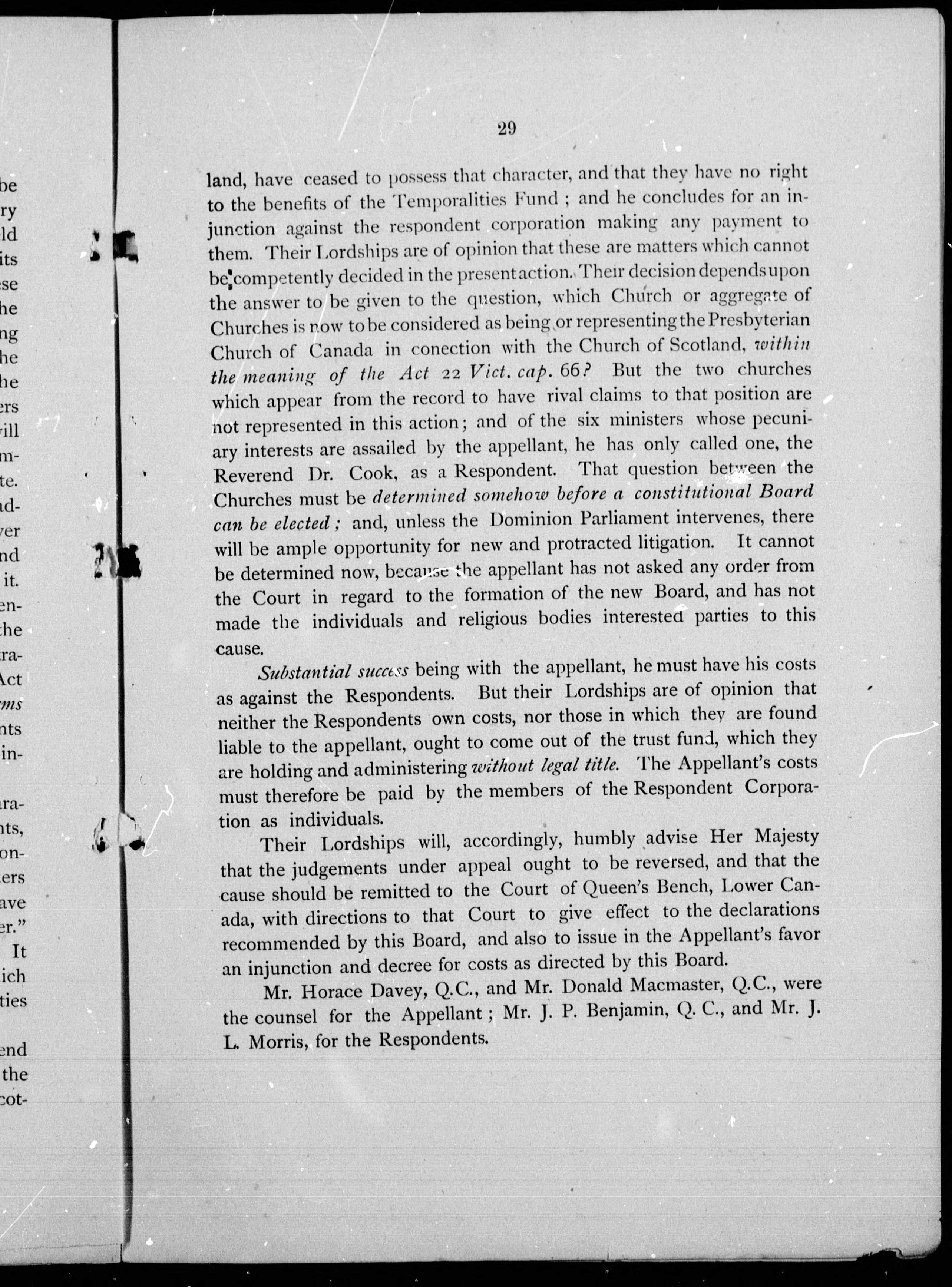 - The Temporalities Fund of the Presbyterian Church of Canada in connection with the Church of Scotland : with the full text of the judgement rendered by the Judicial Committee of Her Majesty's Privy Council at Whitehall, January 21st, 1882.