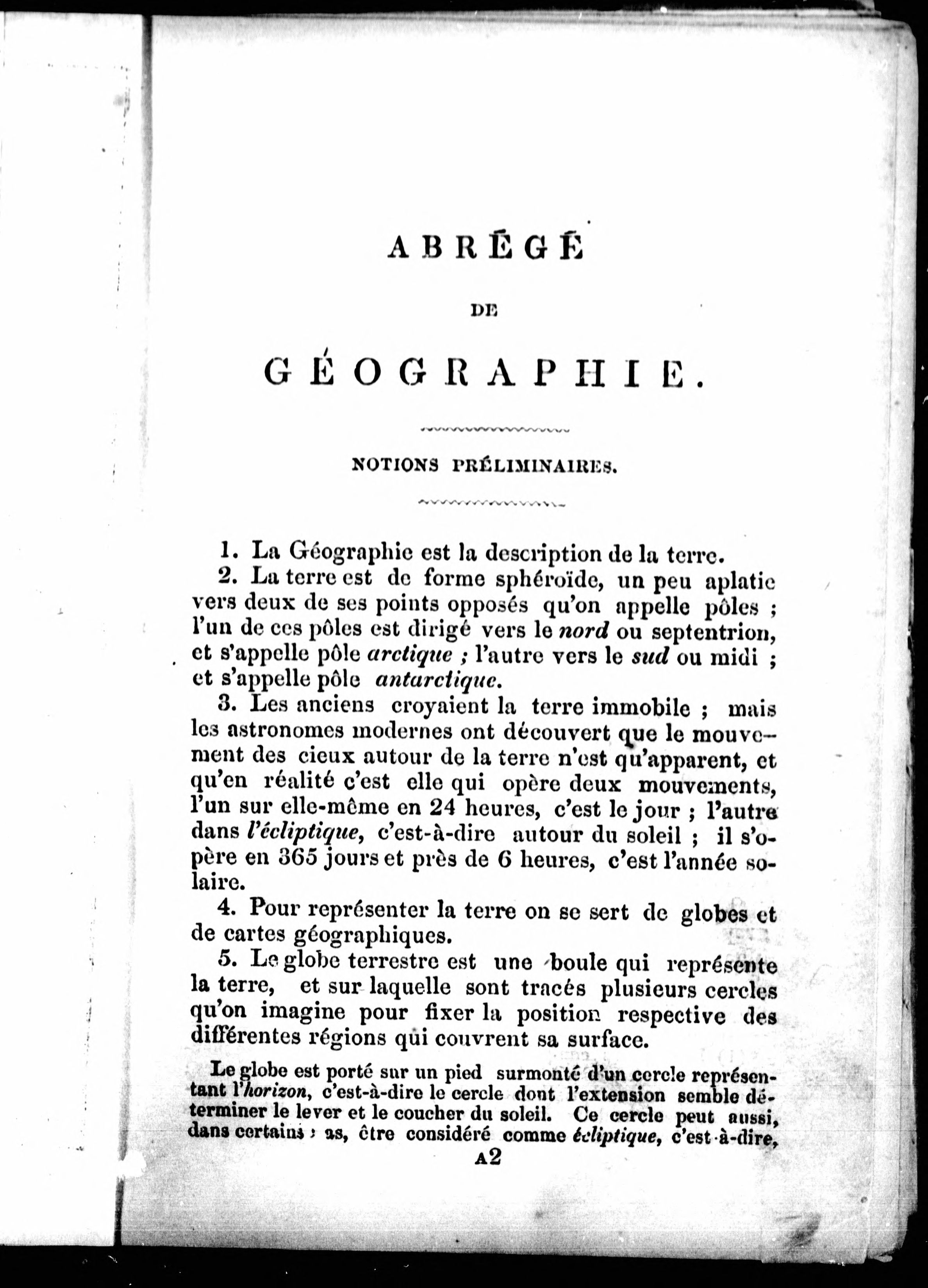 Abrégé de géographie commerciale et historique : suivi des moeurs et des usages principaux peuples, et d'un précis de cosmographie selon le système de Copernic, ouvrage orné de six cartes géographiques, à l'usage des écoles chrétiennes.