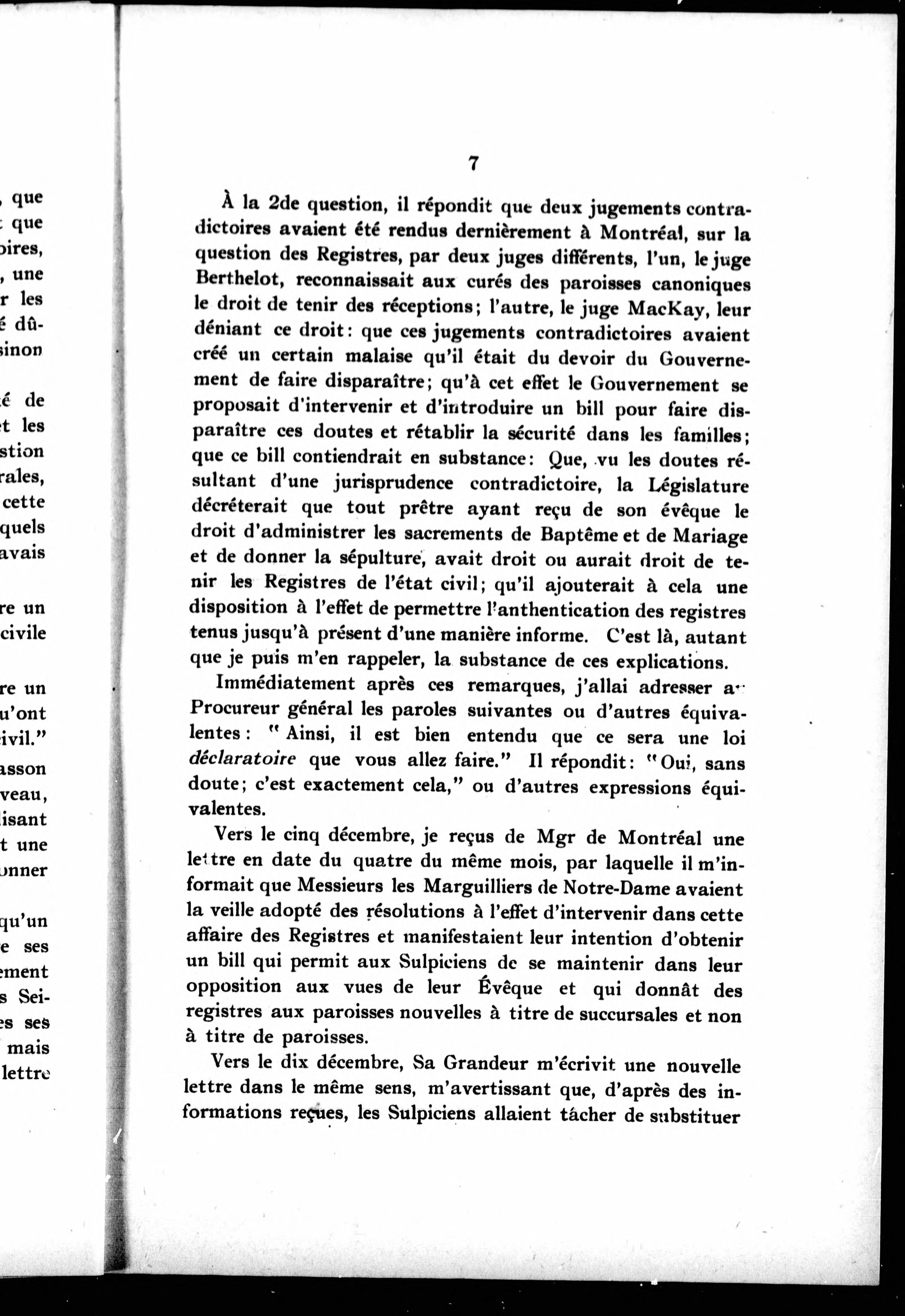 - Opposition de Monseigneur Taschereau, archevêque de Montréal, au bill des registres en faveur des nouvelles paroisses de Montréal.