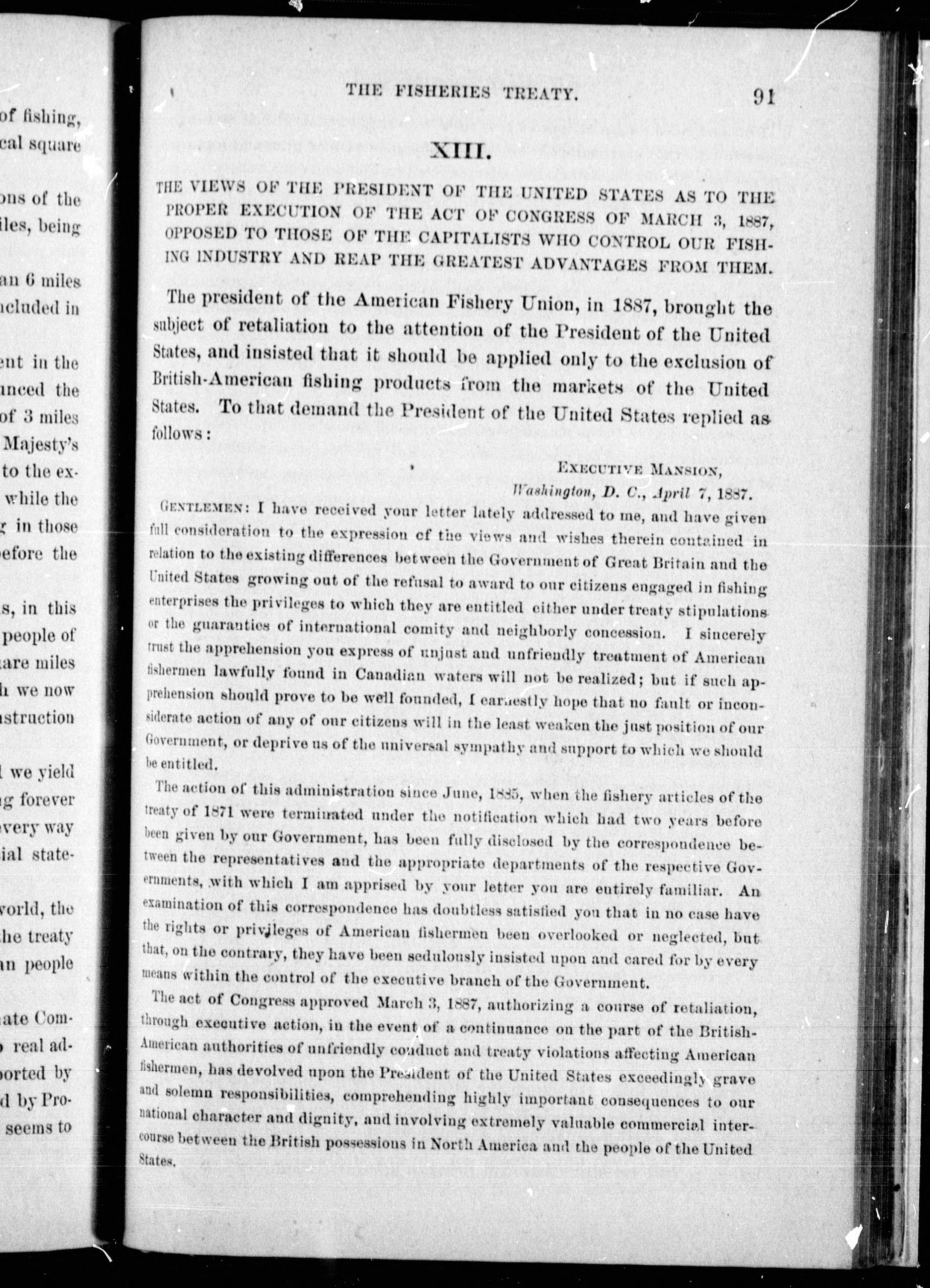 Message from the President of the United States transmitting a letter of the Secretary of State, with the correspondence relative to the proposed fisheries treaty.