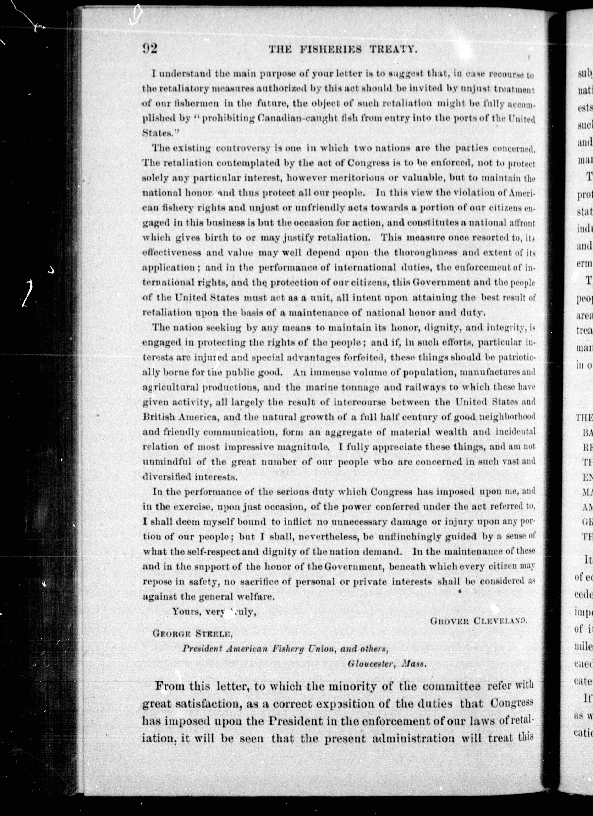 Message from the President of the United States transmitting a letter of the Secretary of State, with the correspondence relative to the proposed fisheries treaty.