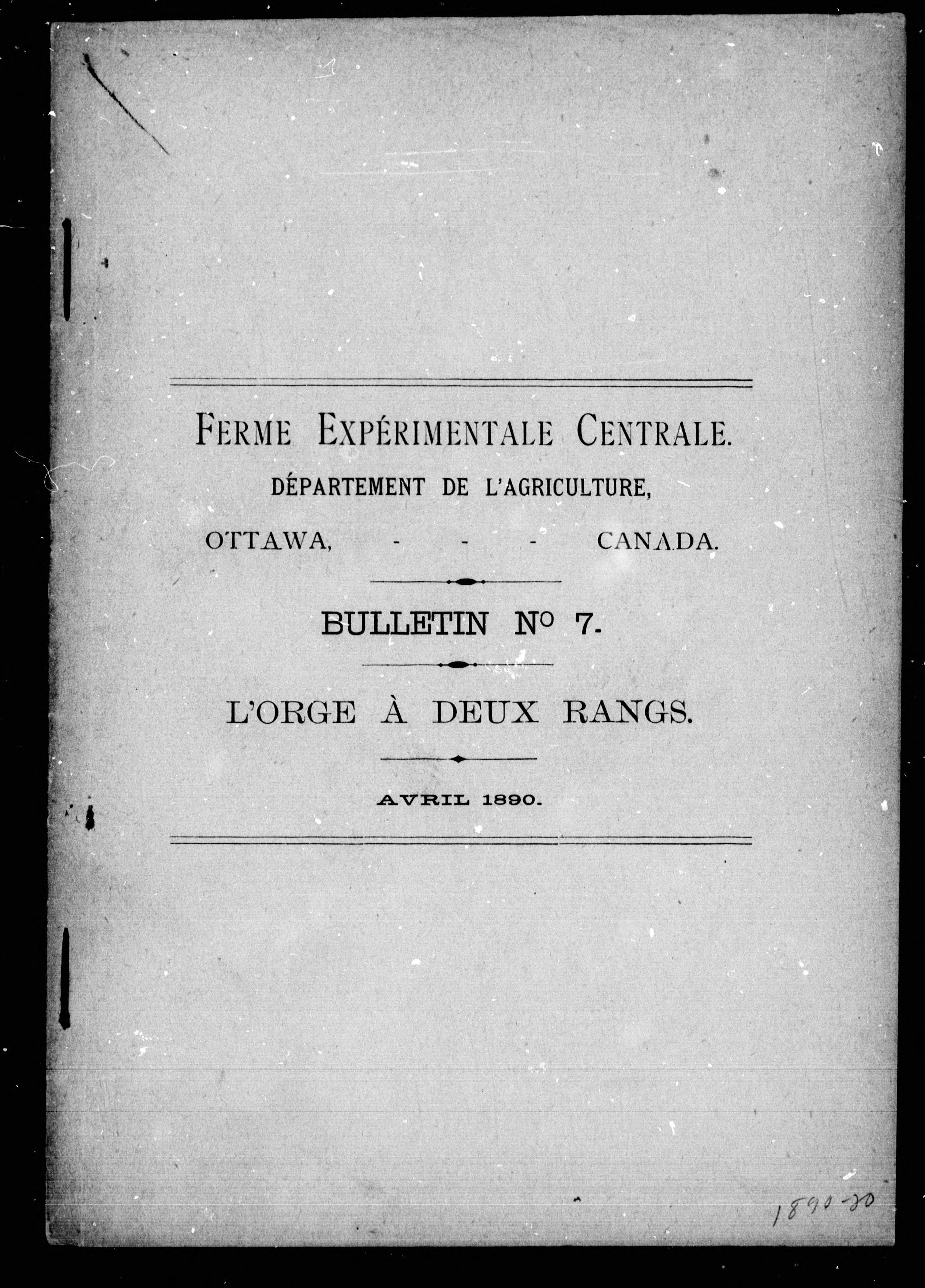 Bulletin / Ministère de l'agriculture, Ferme expérimentale centrale ; no 7.