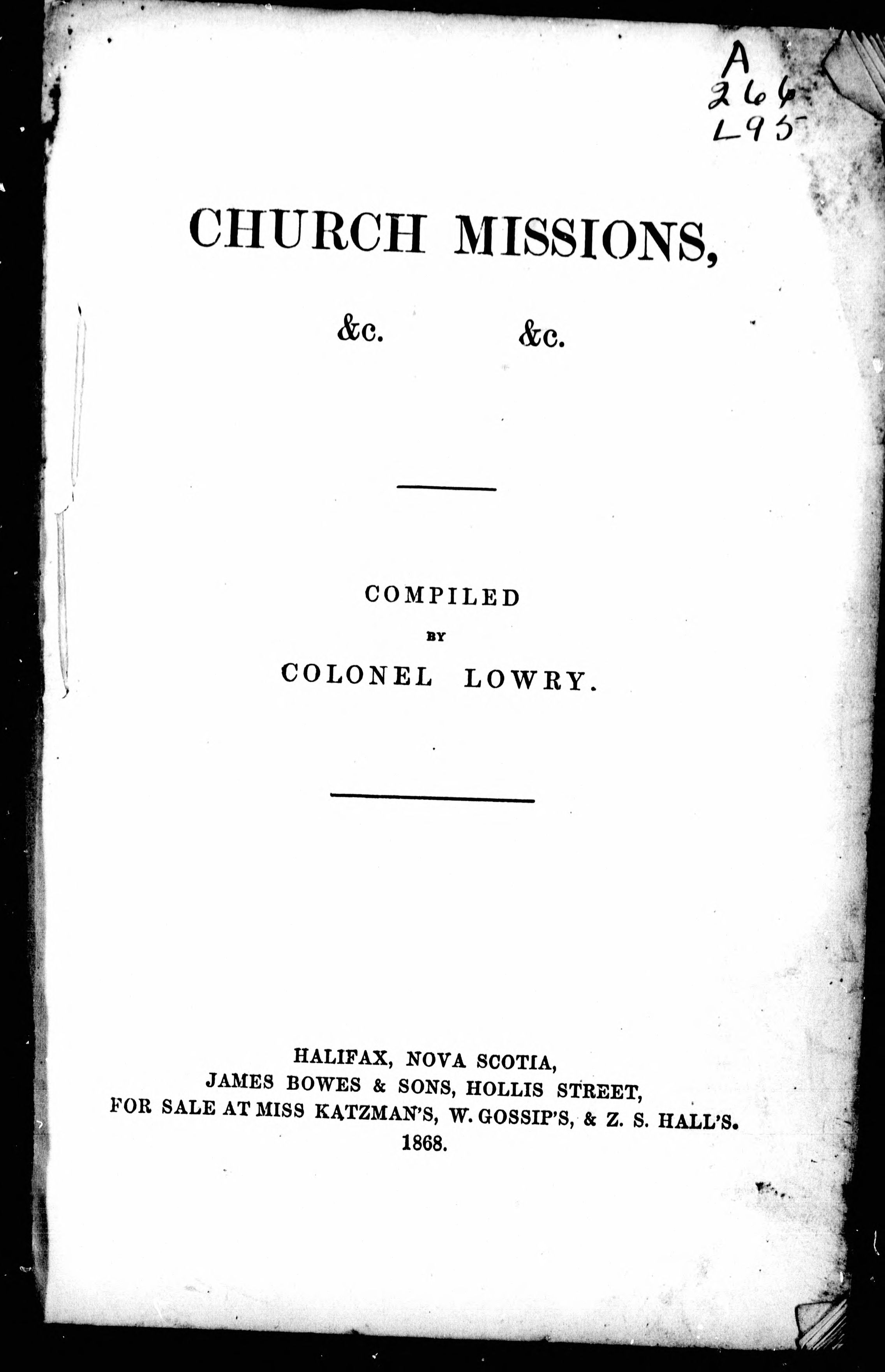 - Halifax, N.S. : J. Bowes, 1868.