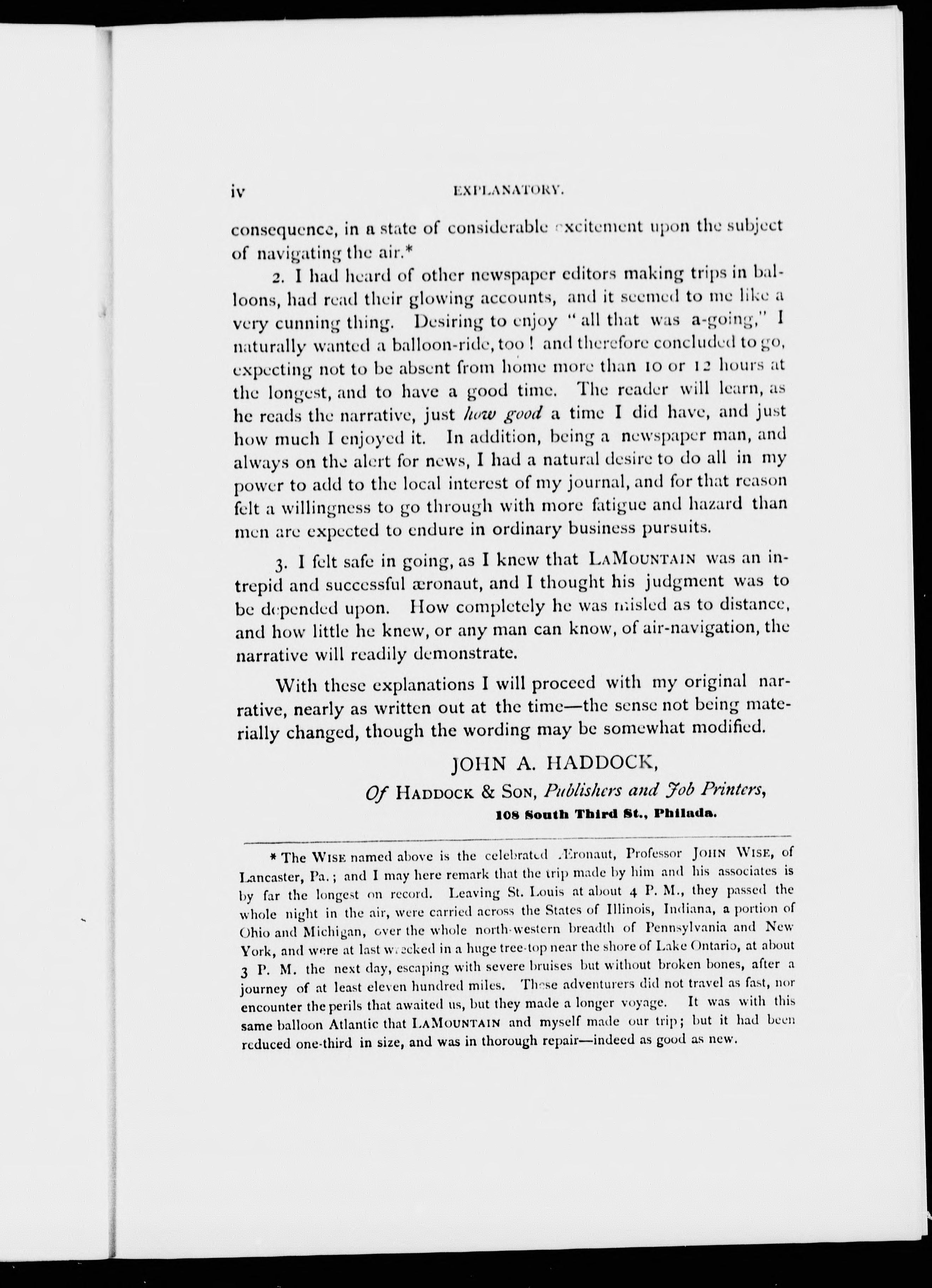 Mr. Haddock's narrative of his hazardous and exciting voyage in the balloon "Atlantic", with Prof. Jno. LaMountain /