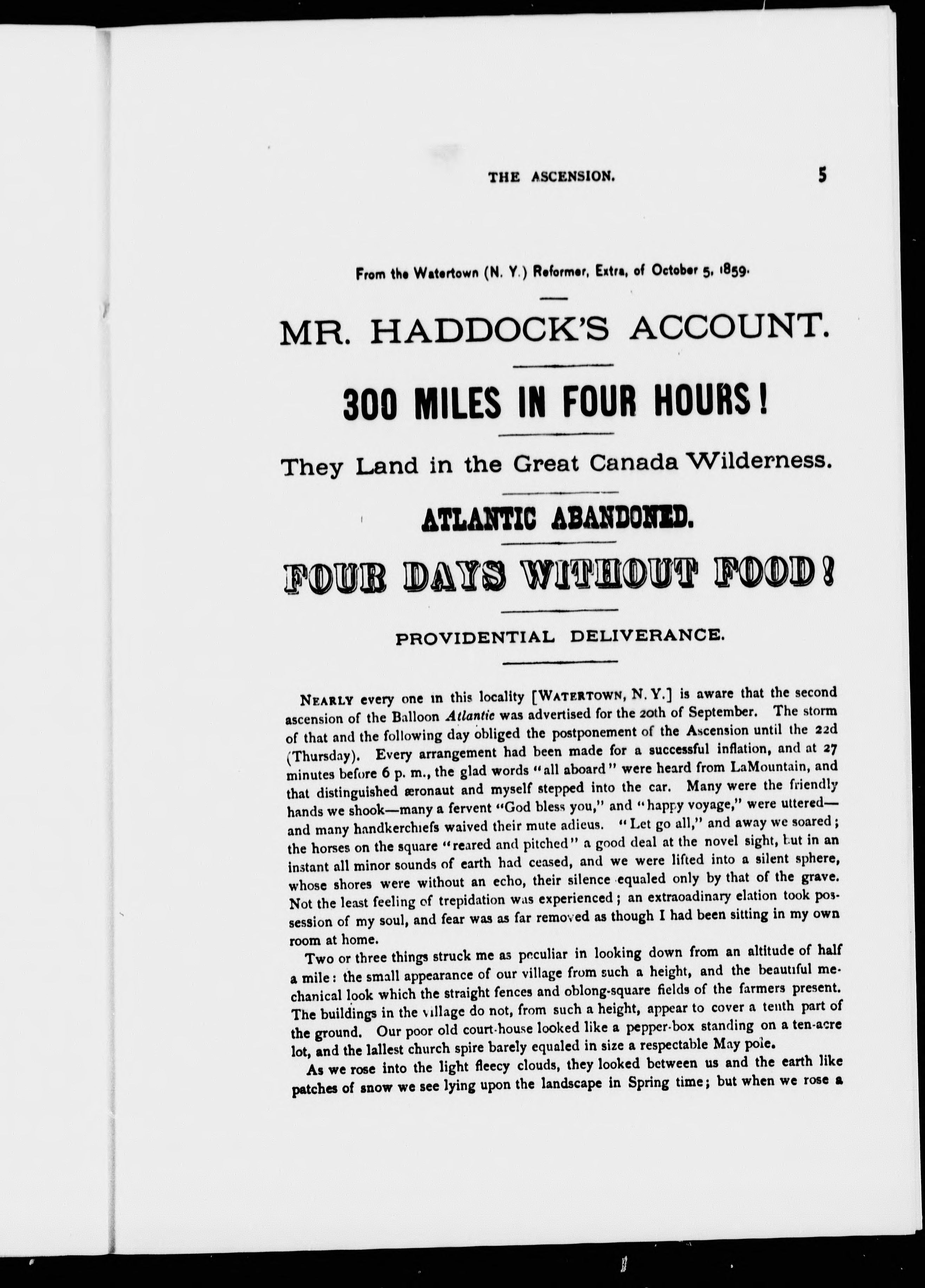 Mr. Haddock's narrative of his hazardous and exciting voyage in the balloon "Atlantic", with Prof. Jno. LaMountain /