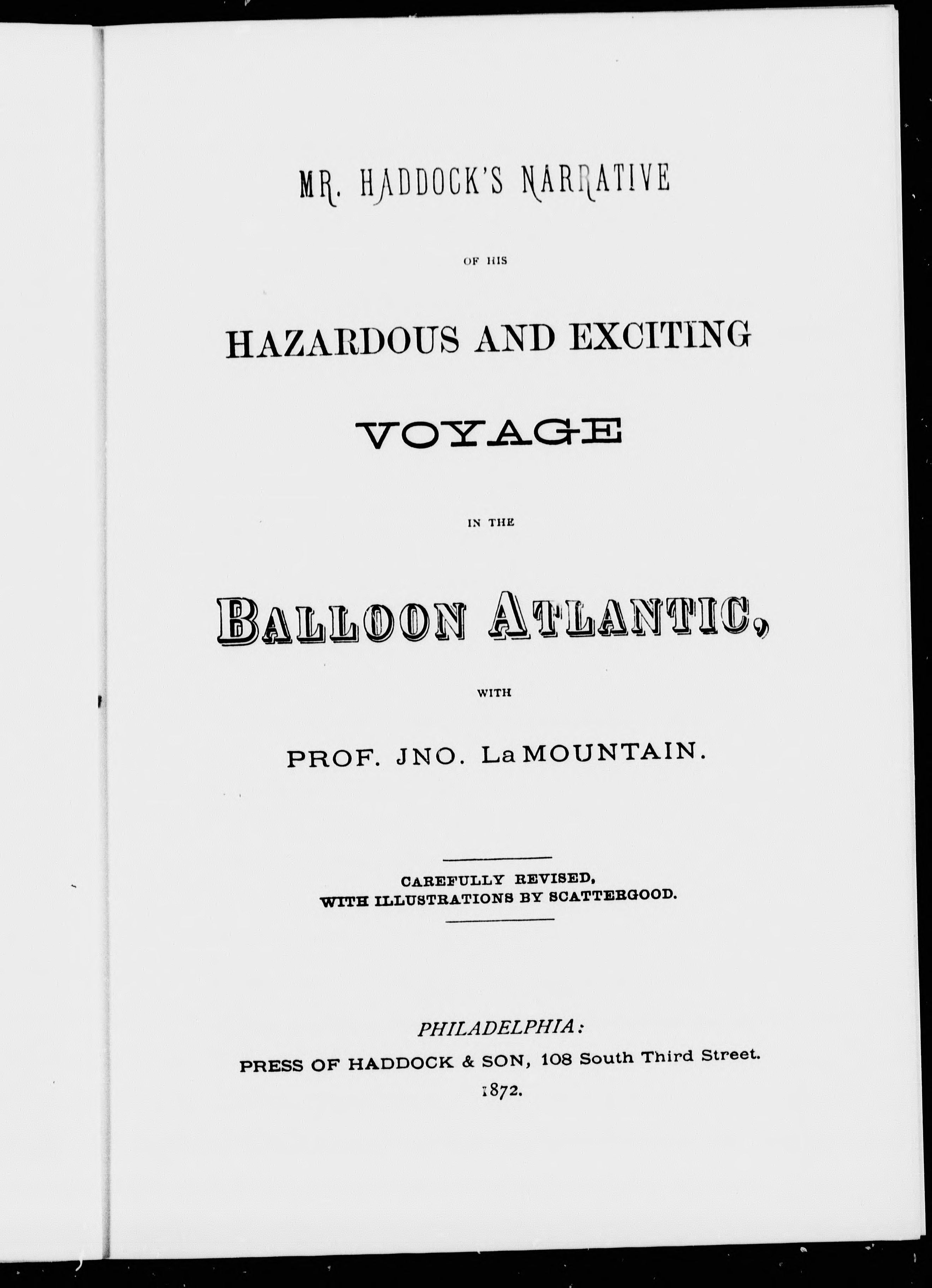 - Mr. Haddock's narrative of his hazardous and exciting voyage in the balloon "Atlantic", with Prof. Jno. LaMountain