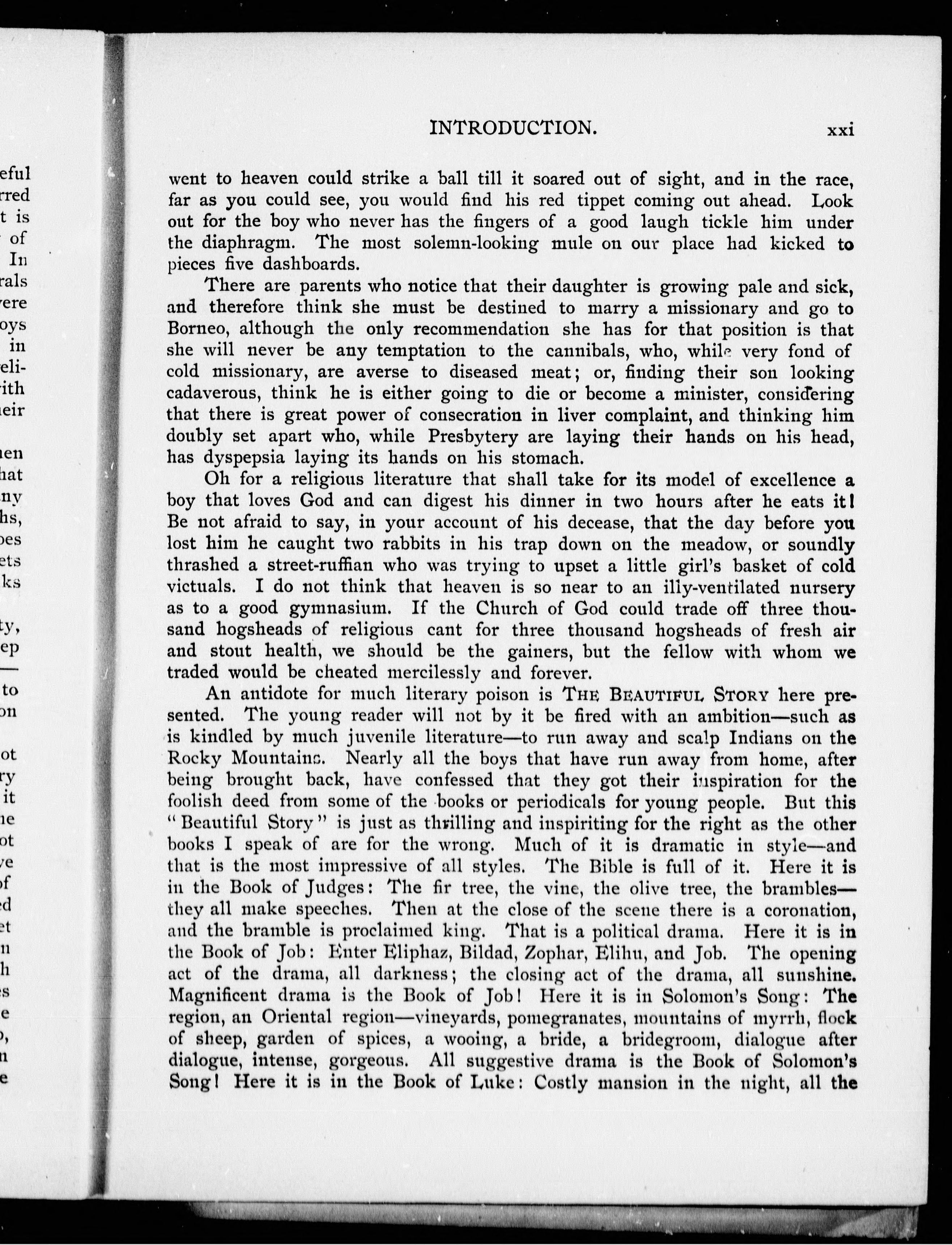 The beautiful story : a companion book to the Holy Bible, containing a narrative history of all the events recorded in the sacred book ... to which is added Golden gems of religious thought, including numerous selections from great writers and speakers, for fireside reading, sacred reflection, the elevation and happiness of the home circle and to point the way to heaven