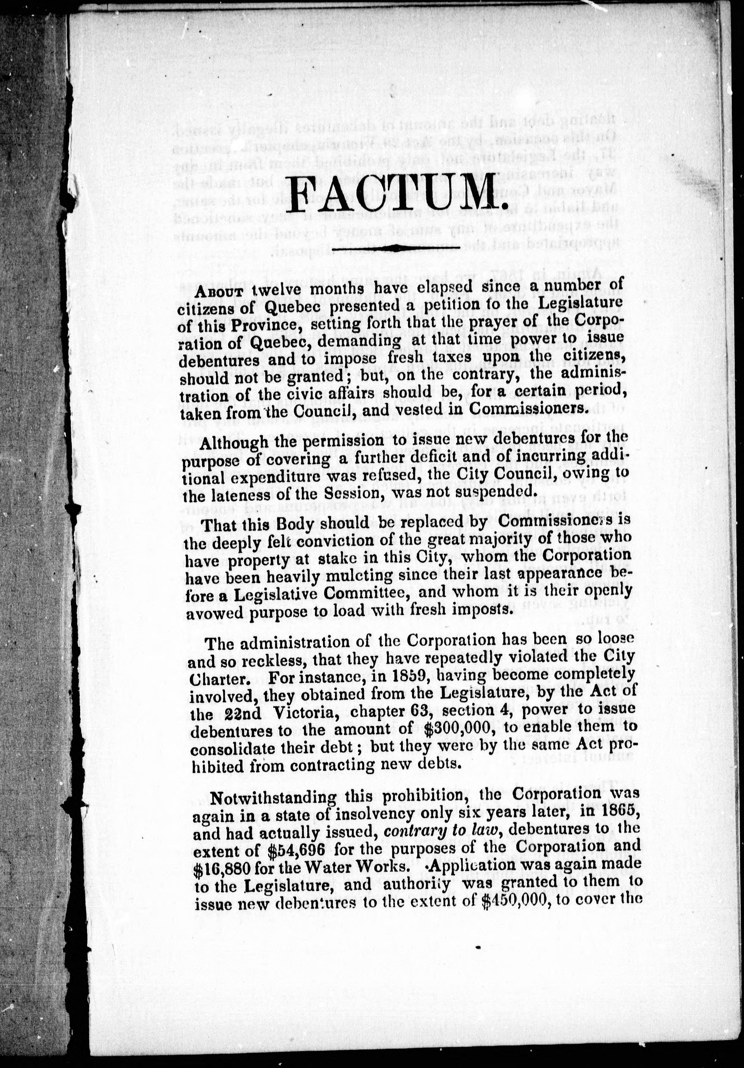 A Few facts illustrating the management of the civic affairs of Quebec, 10th March, 1869.