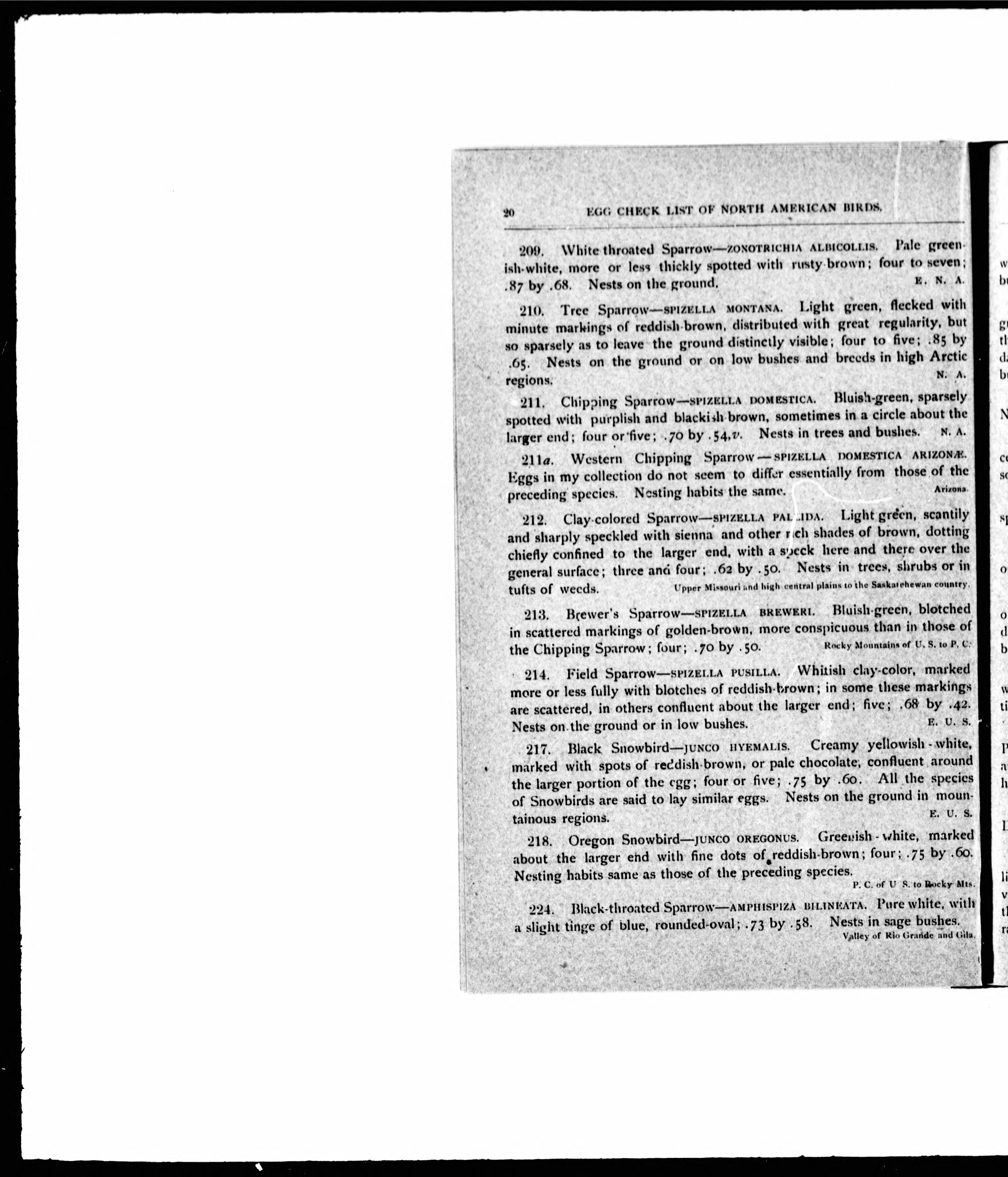 An egg check list of North American birds : giving accurate descriptions of the color and size of the eggs, and locations of the nests of the land and water birds of North America