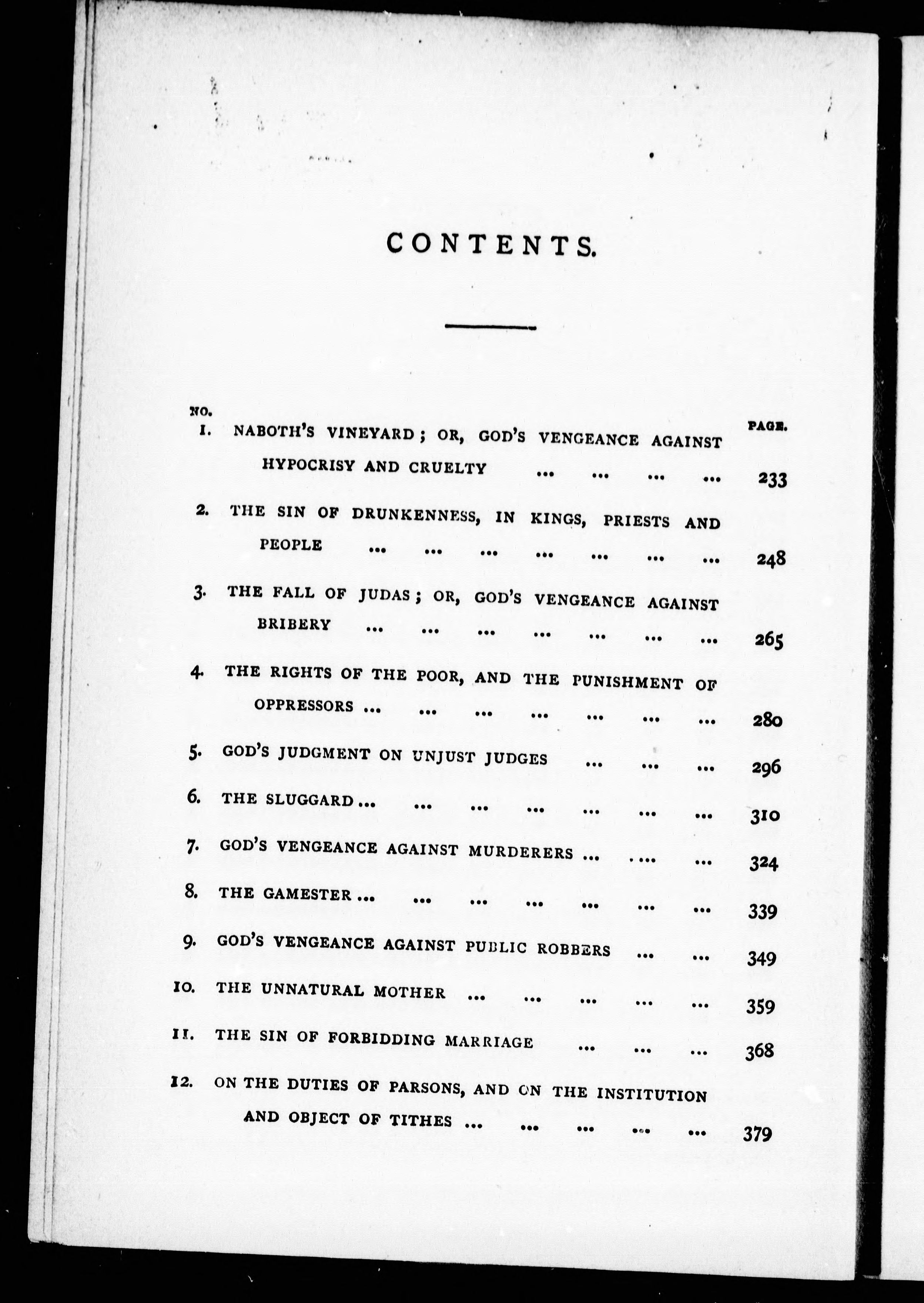 "Together with his twelve quaint sermons, on various subjects: 1. hypocrisy and cruelty ... 12. persons and tithes."