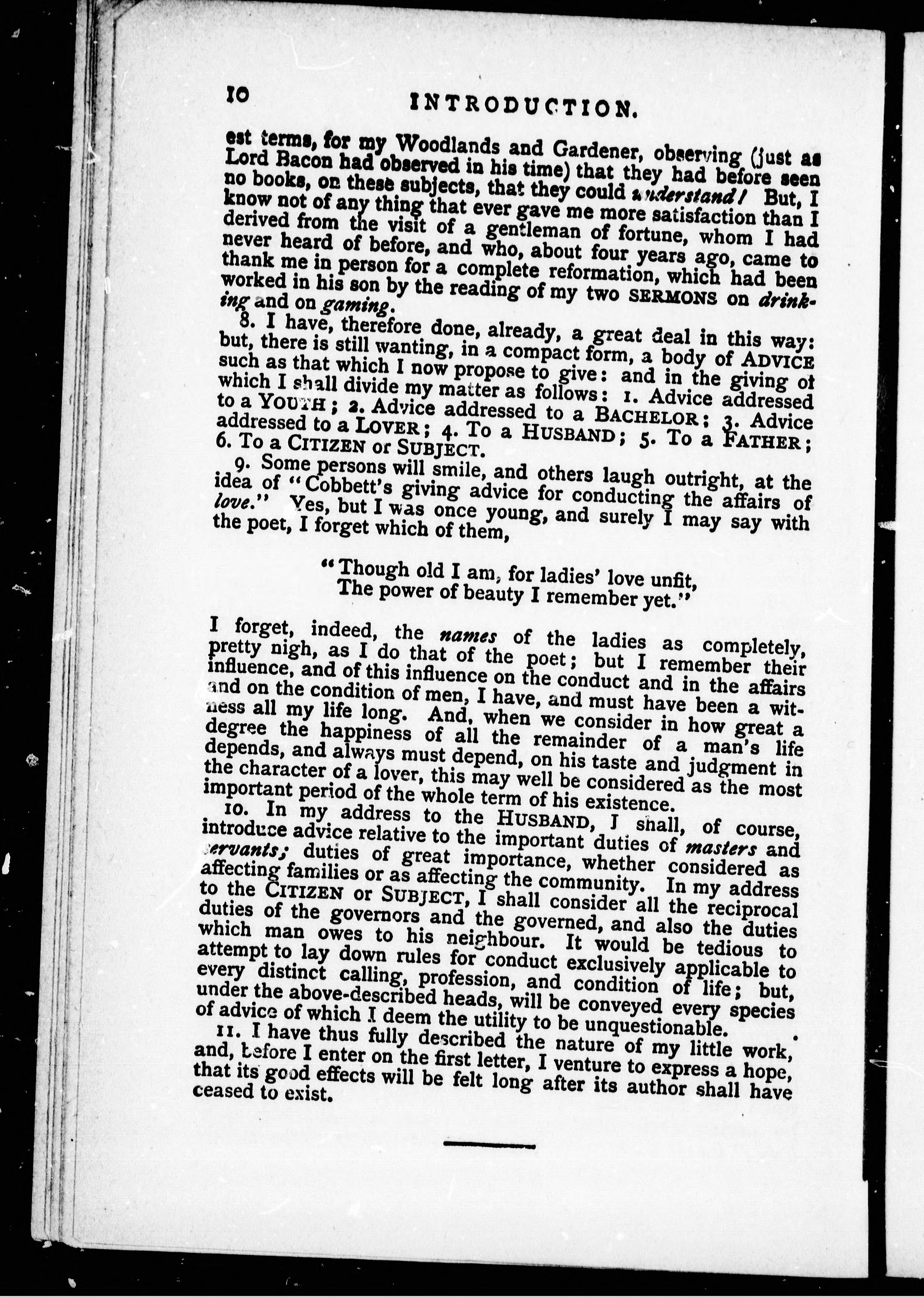Advice to young men, and (incidentally) to young women, in the middle and higher ranks of life : in a series of letters addressed to a youth, a bachelor, a lover, a husband, a father, a citizen, or a subject