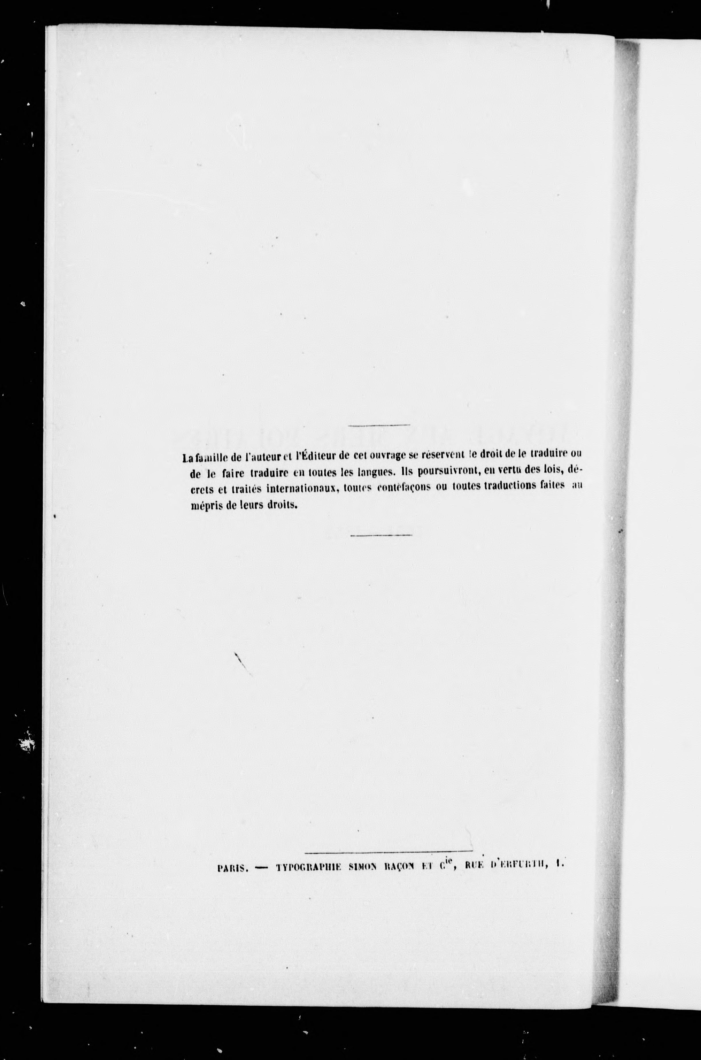 "La famille de l'auteur et l'Editeur se réservent le droit de traduction et de reproduction à l'étranger".