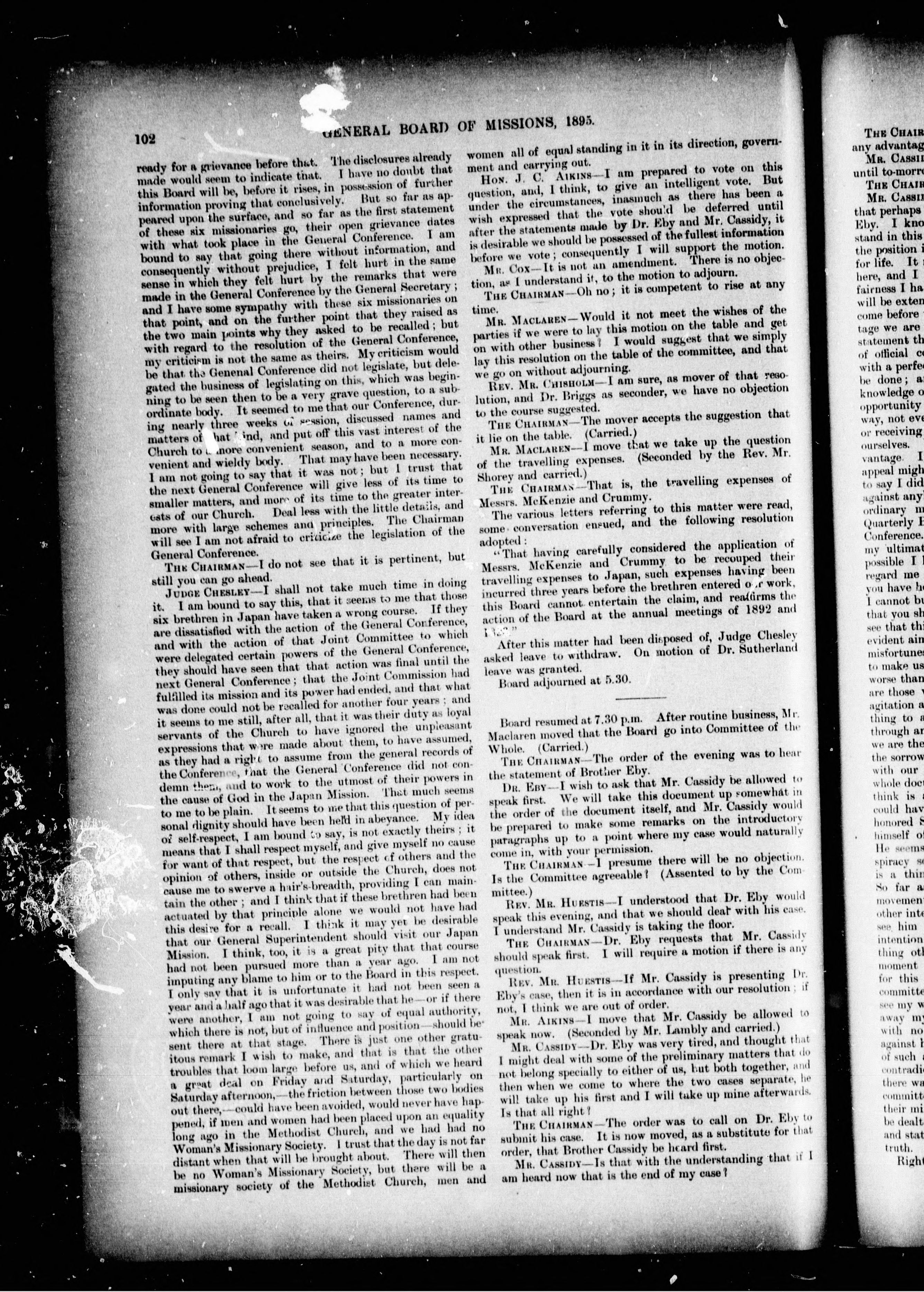 Stenographic report of proceedings, re Japan affairs at the annual meeting of the General Board of Missions of the Methodist Church, held in Montreal, October 3rd to 11th, 1895.