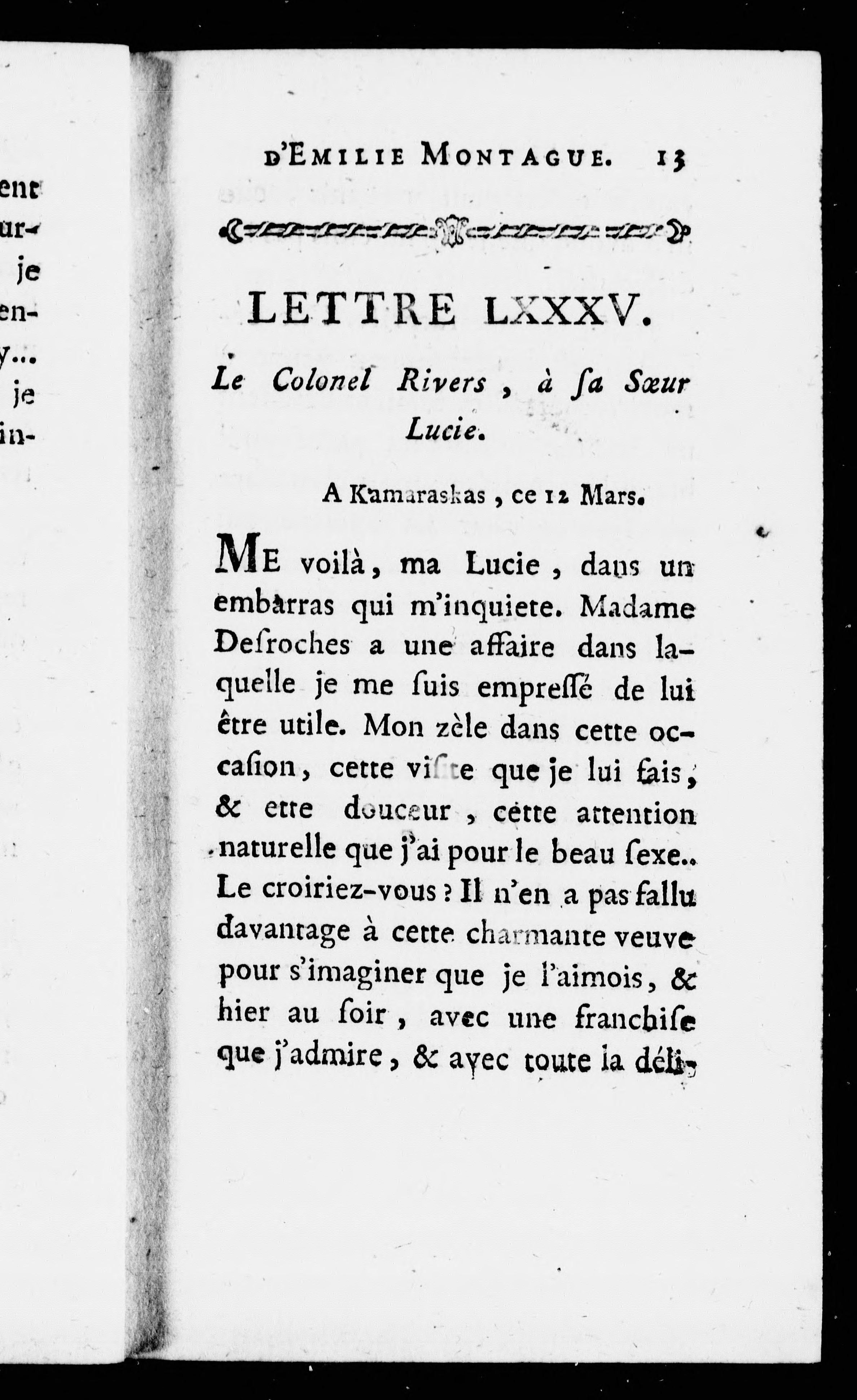 Aussi publié en anglais sous le titre: The history of Emily Montague.