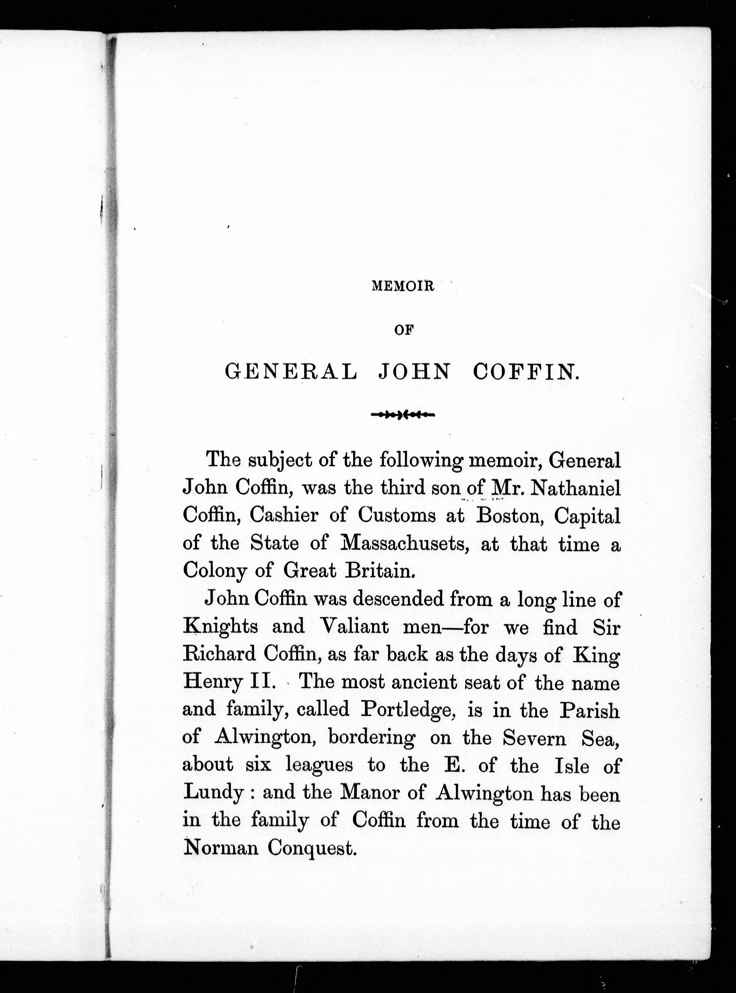 - A memoir of General John Coffin