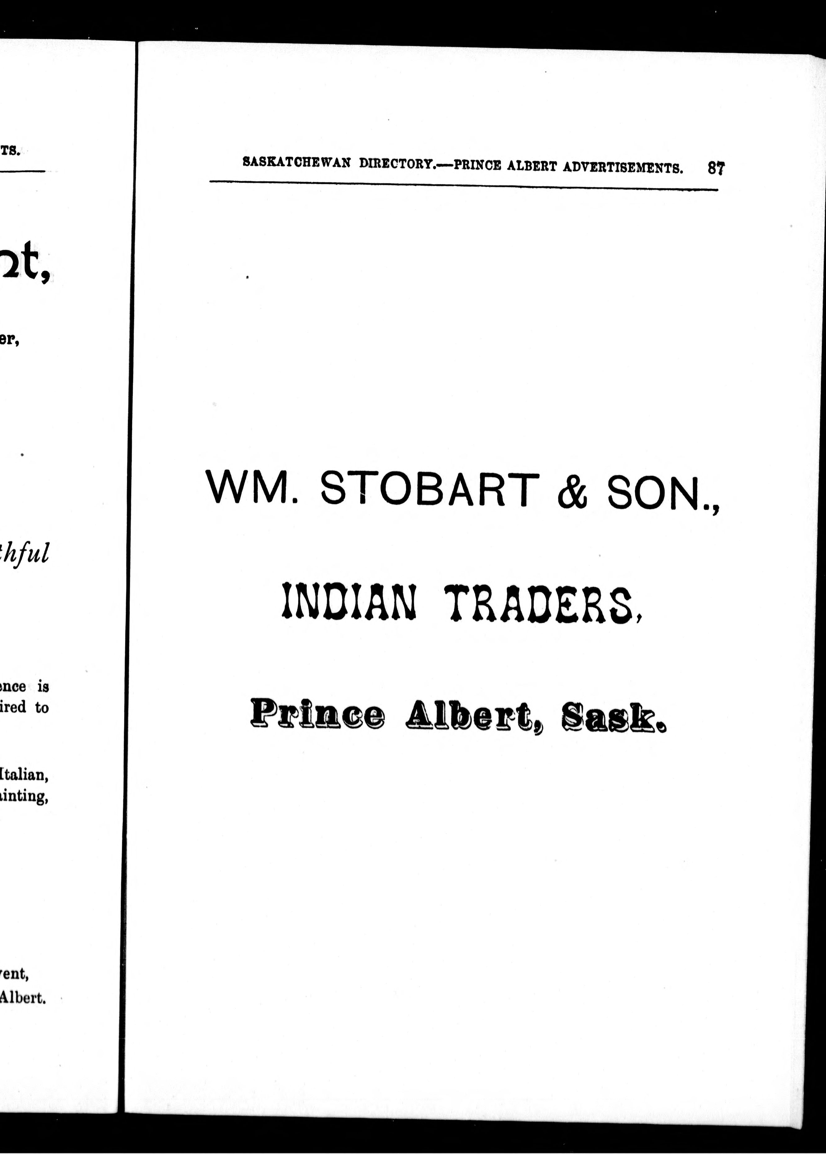 McPhillips' alphabetical and business directory of the District of Saskatchewan, N.W.T. : together with brief historical sketches of Prince Albert, Battleford and the other settlements in the district, 1888.