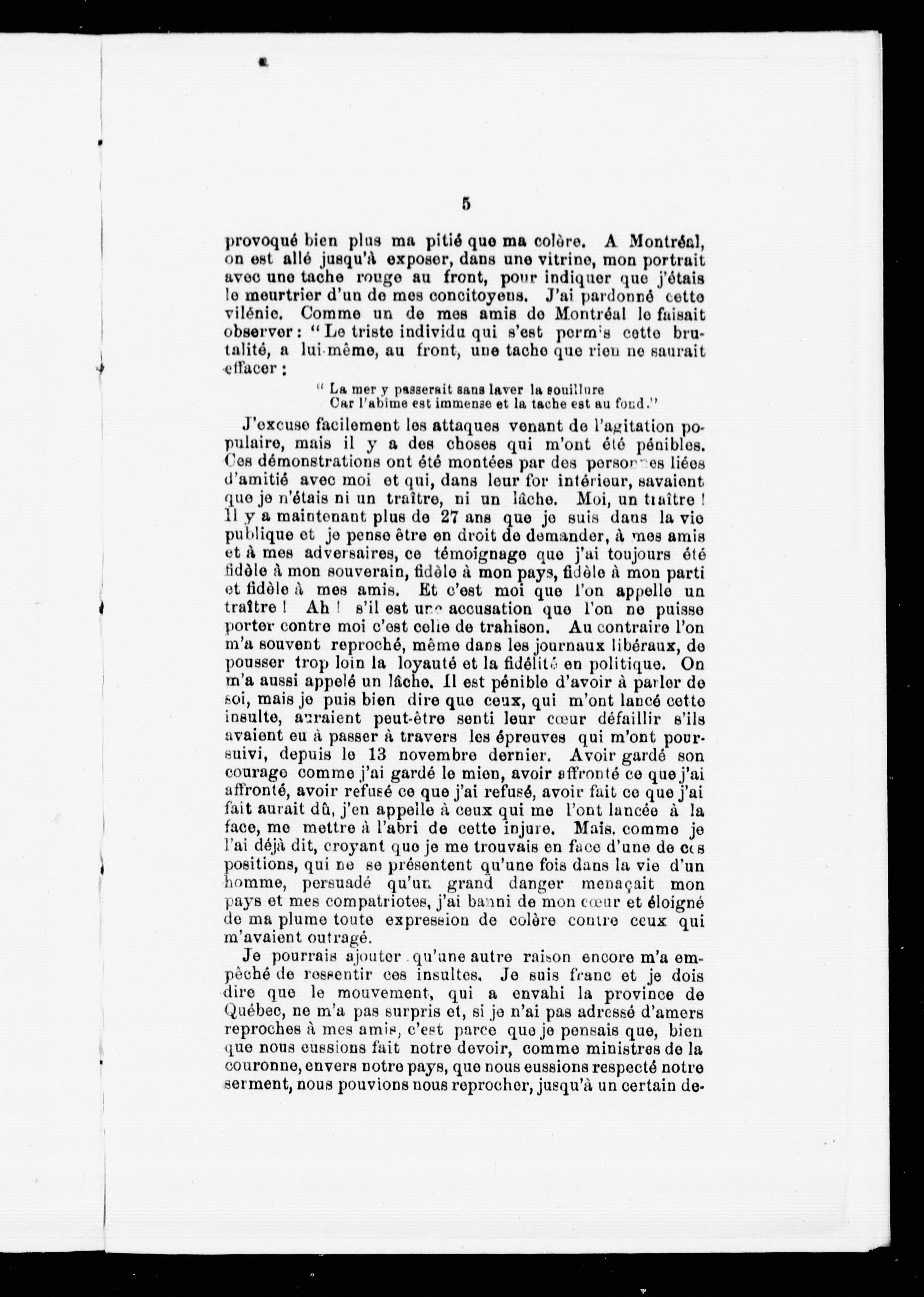 Discours de l'hon. J.A. Chapleau, M.P., sur l'exécution de Louis Riel.