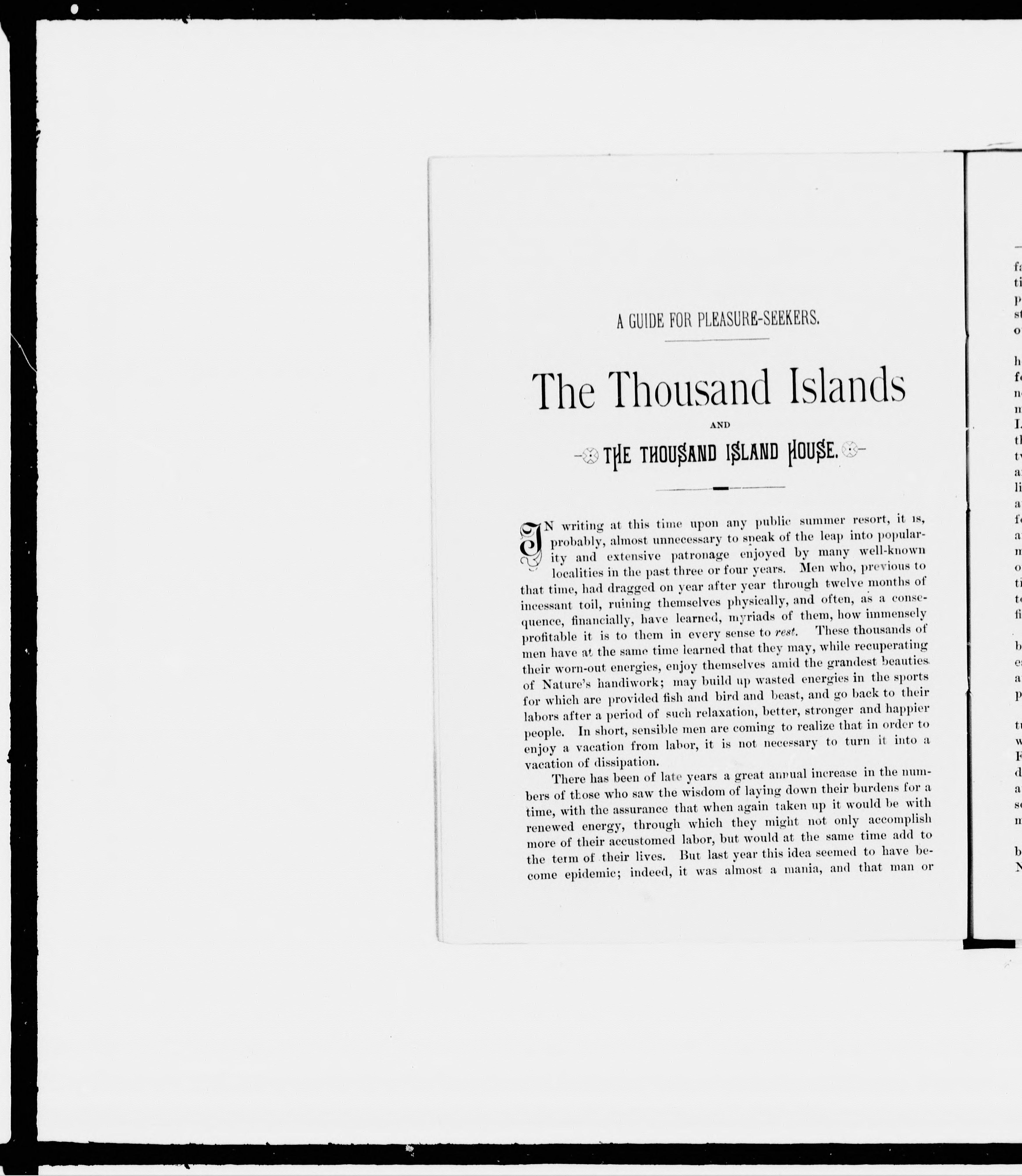 Guide book of the Thousand Island House on the St. Lawrence River, Alexandria Bay, New York.