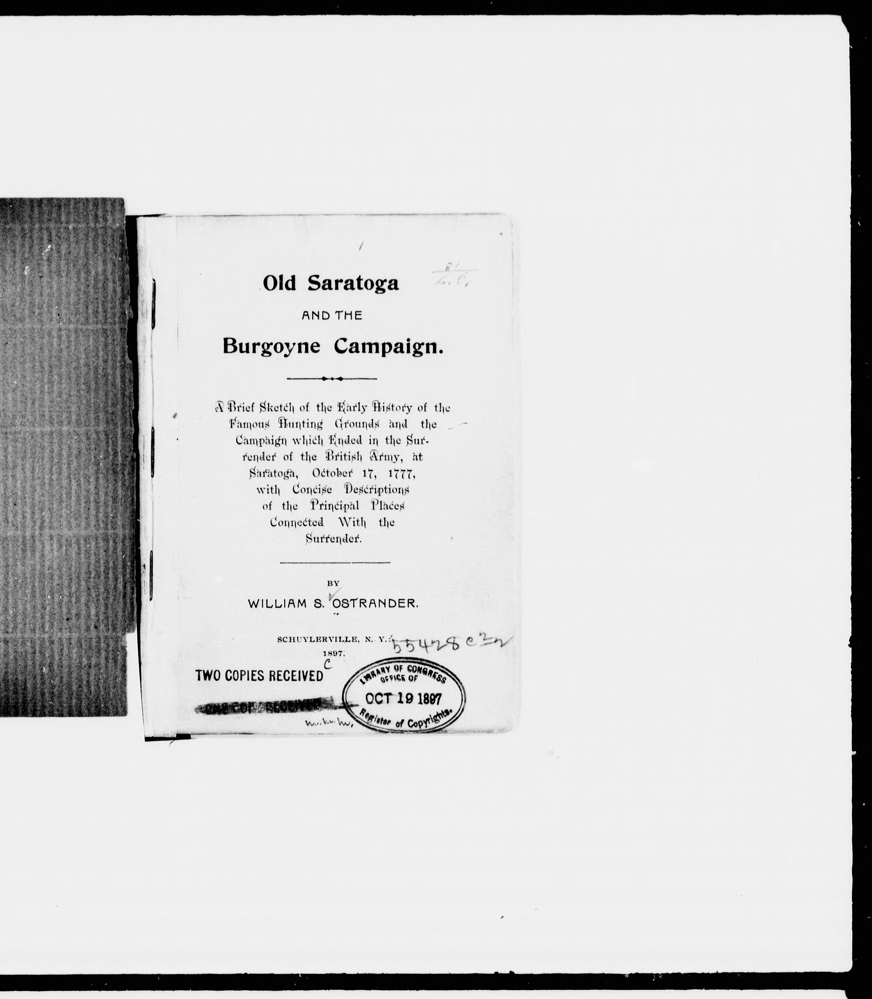 - Old Saratoga and the Burgoyne campaign : a brief sketch of the early history of the famous hunting grounds and the campaign which ended in the surrender of the British army, at Saratoga, October 17, 1777, with concise descriptions of the principal places connected with the surrender